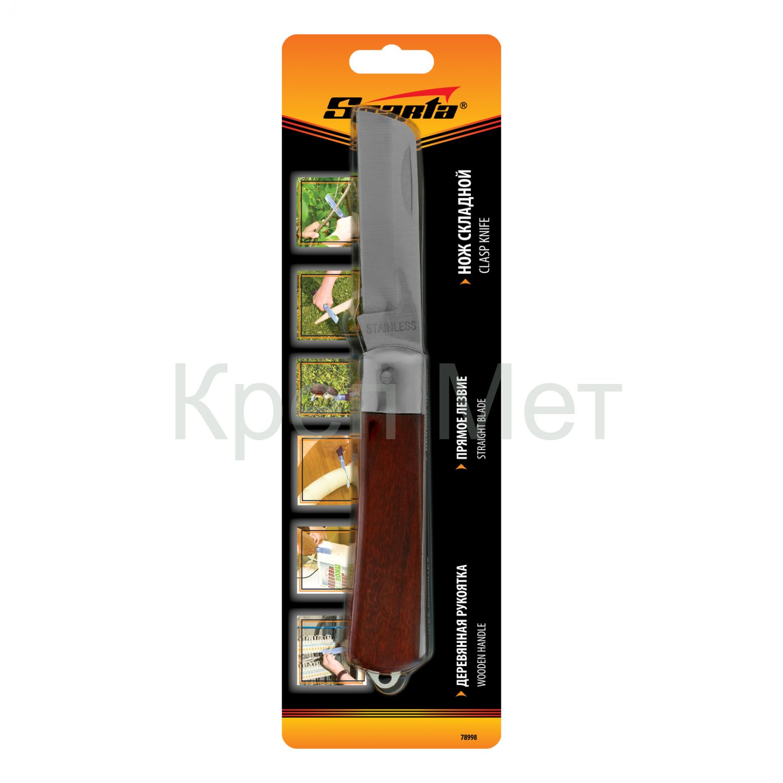 Складной нож Sparta 78998 с прямым лезвием и деревянной ручкой эффективно справляется с резкой резиновых, кожаных и картонных изделий. За счет своей универсальности он будет полезен профессиональным и частным мастерам, туристам, любителям отдыха на природе.