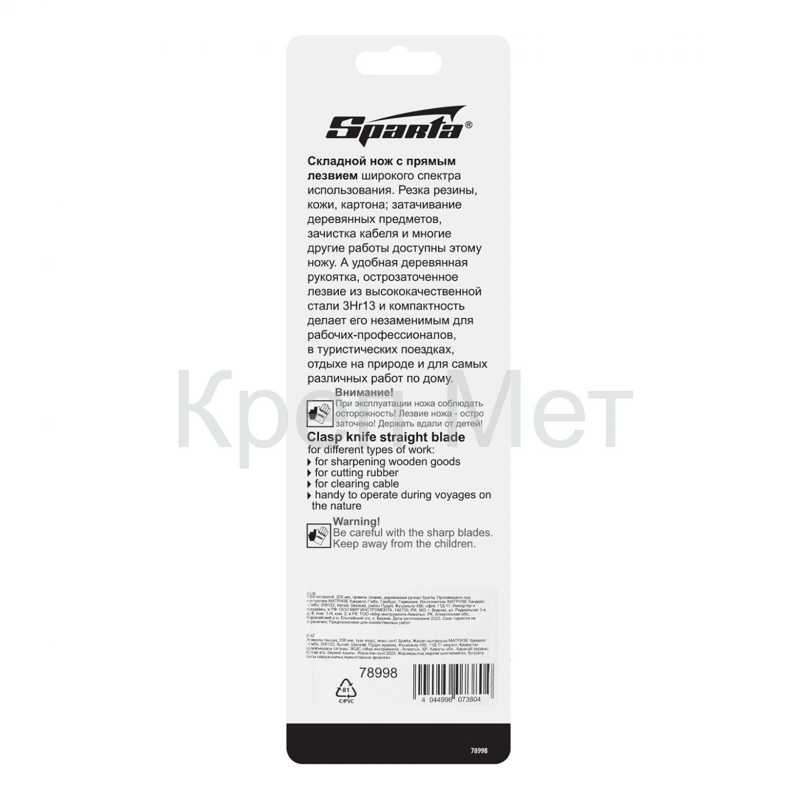 - Нож складной, 200 мм, прямое лезвие, деревянная ручка Sparta