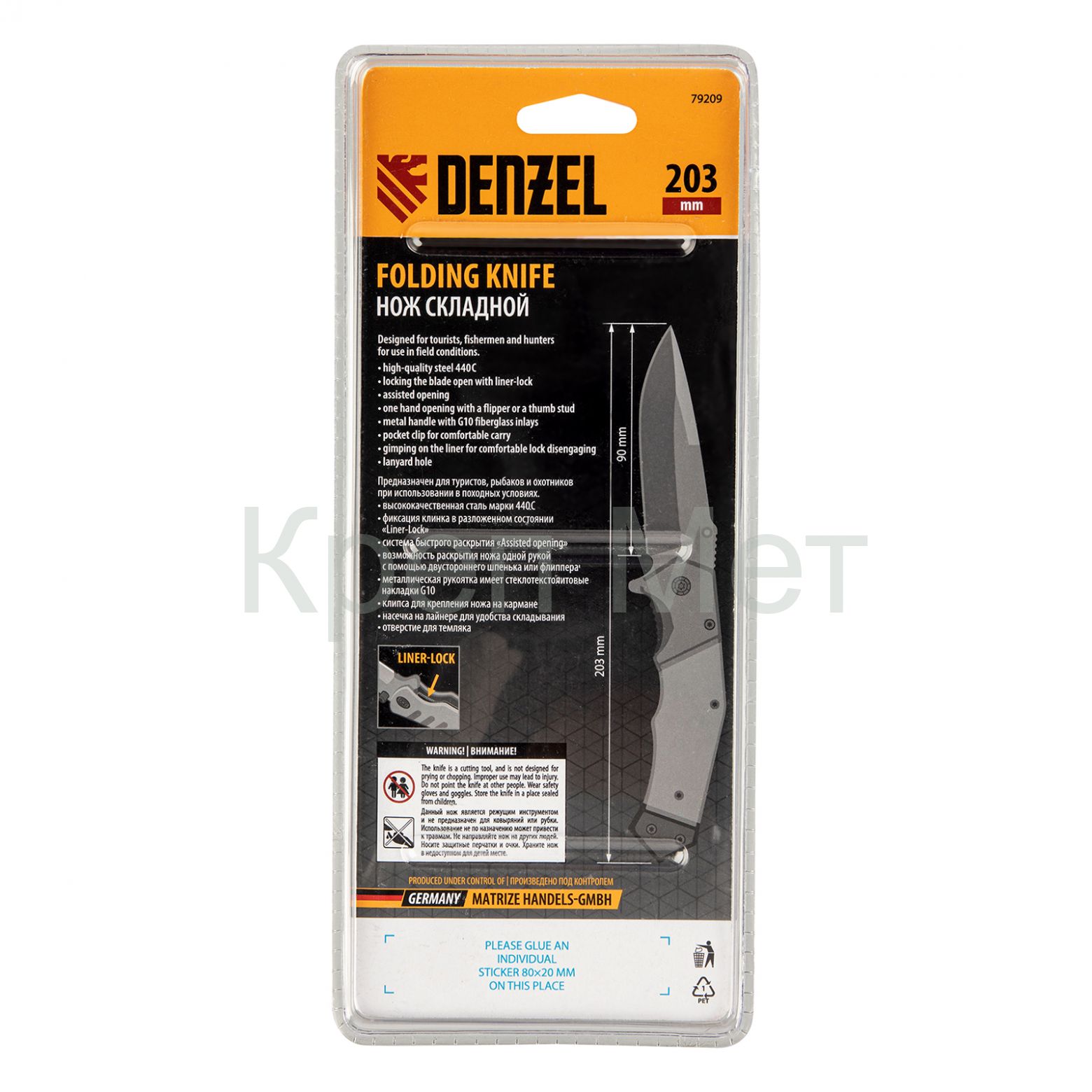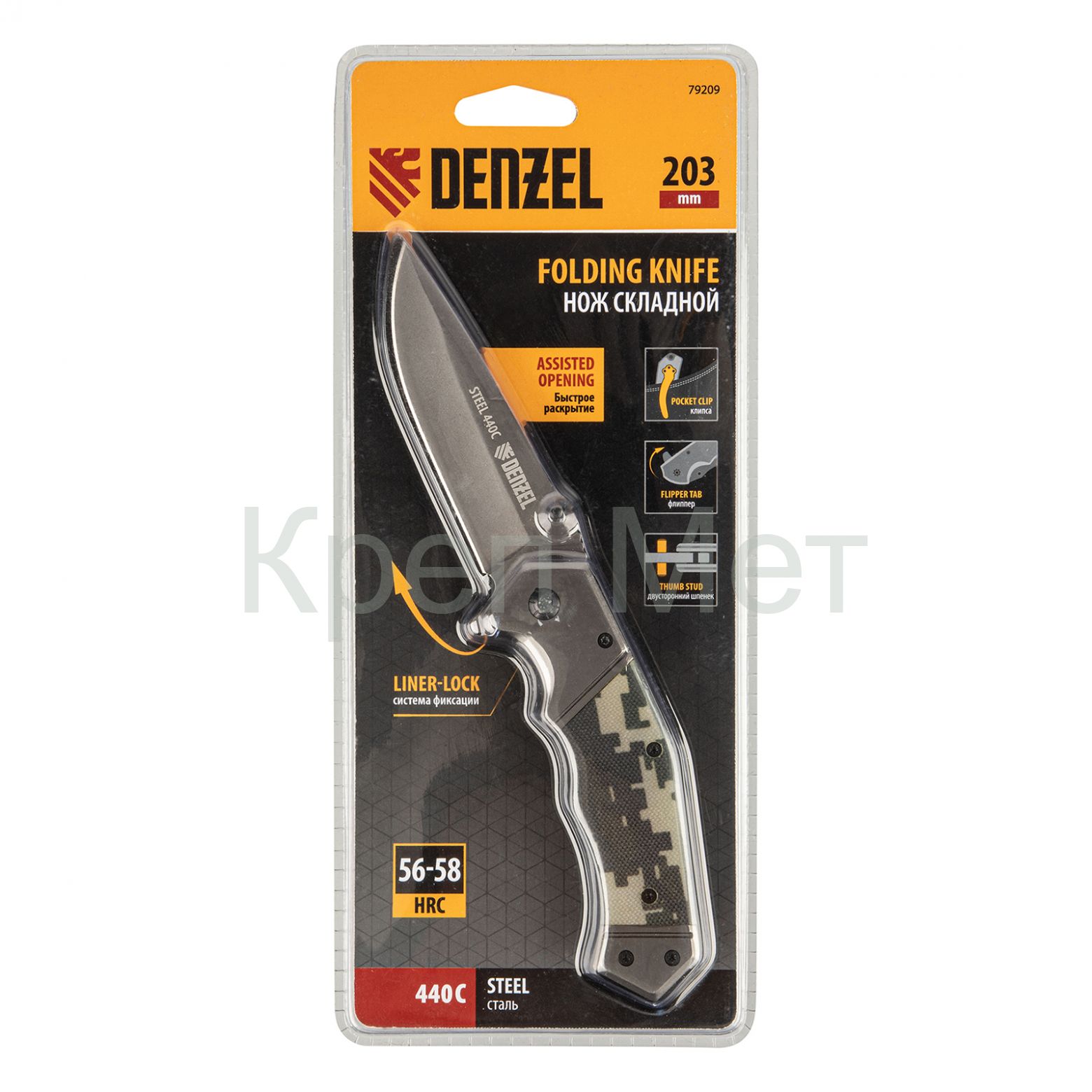 - Нож складной, многоцелевой, системы Liner-Lock, с накладкой G10 на эргономичной рукоятке Denzel