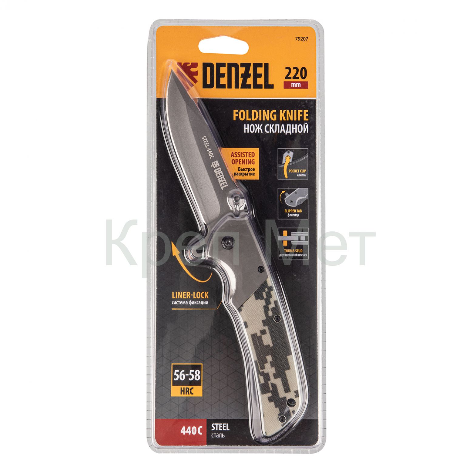 Многоцелевой складной нож Denzel 79207 длиной 220 мм, с системой Liner-Lock, накладкой G10 на классической рукоятке, находит широкое применение при активном отдыхе на природе, во время рыбалки и охоты. Флиппер помогает быстро раскрывать нож.