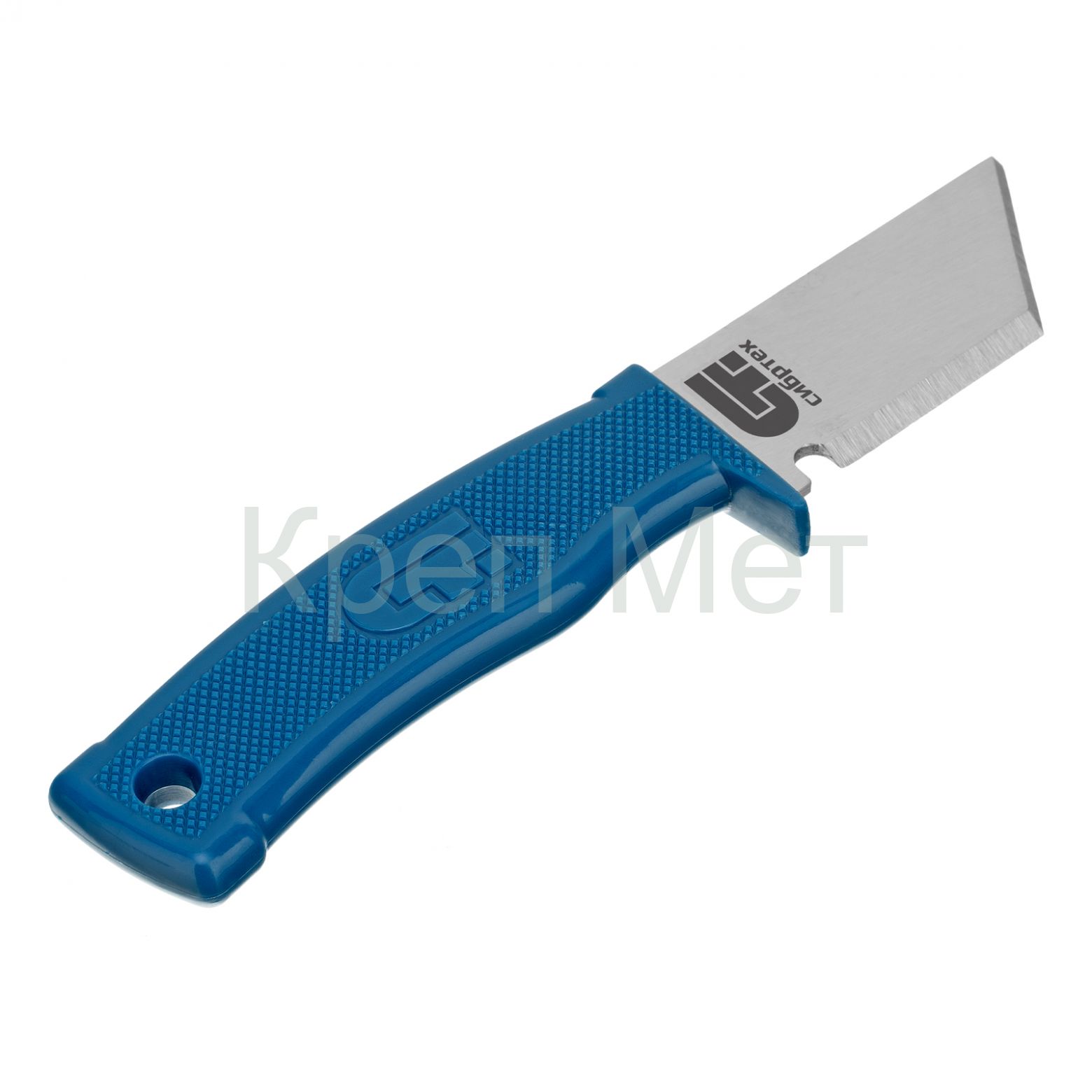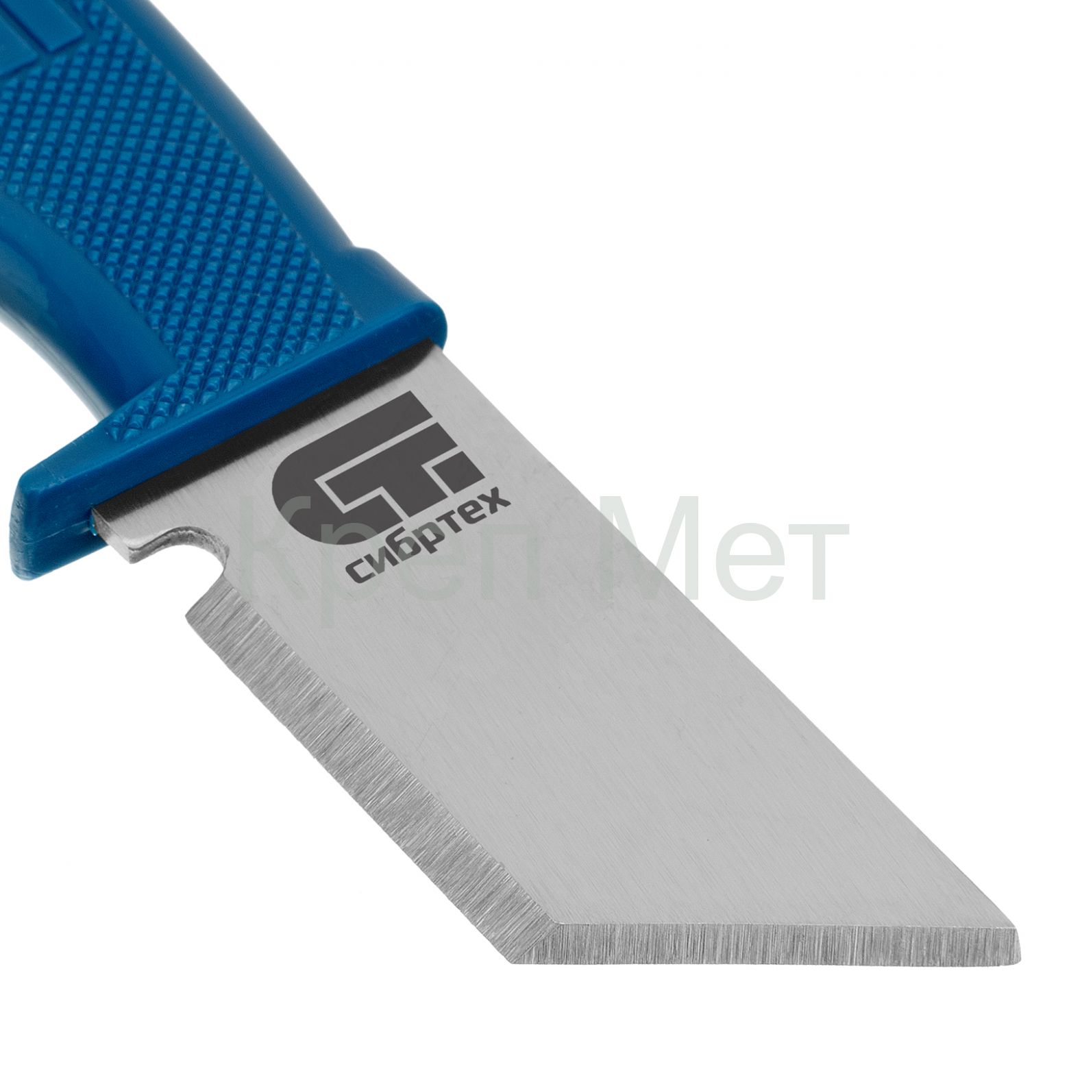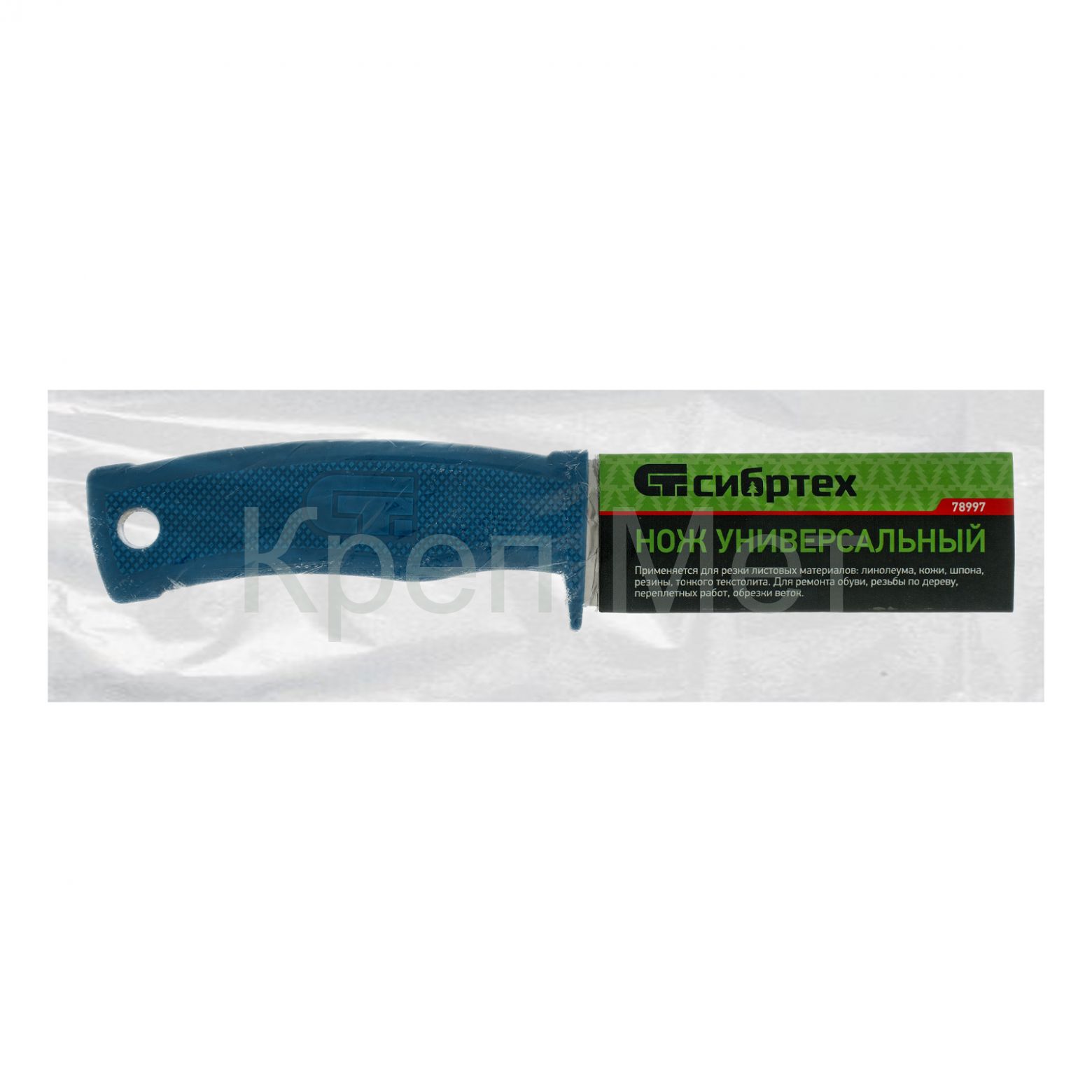 Универсальный нож Сибртех 78997 оснащен трапециевидным лезвием, благодаря чему легко режет плотные материалы: линолеум, шпон, кожу, резину и др. Он универсален по своему применению, поэтому будет полезен мастерам при проведении ремонта обуви, резьбы по дереву, переплетных, садовых и иных работ.