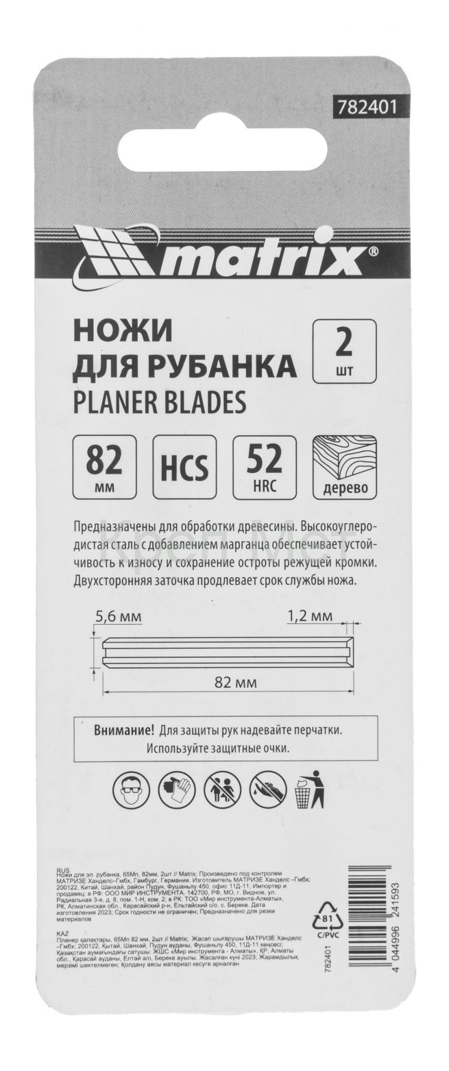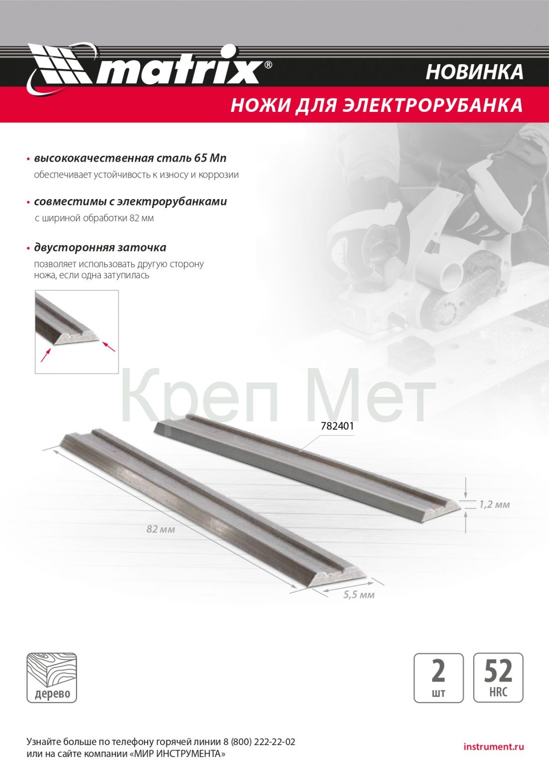 Ножи для эл. рубанка, 65Mn, 82мм, 2шт // Matrix