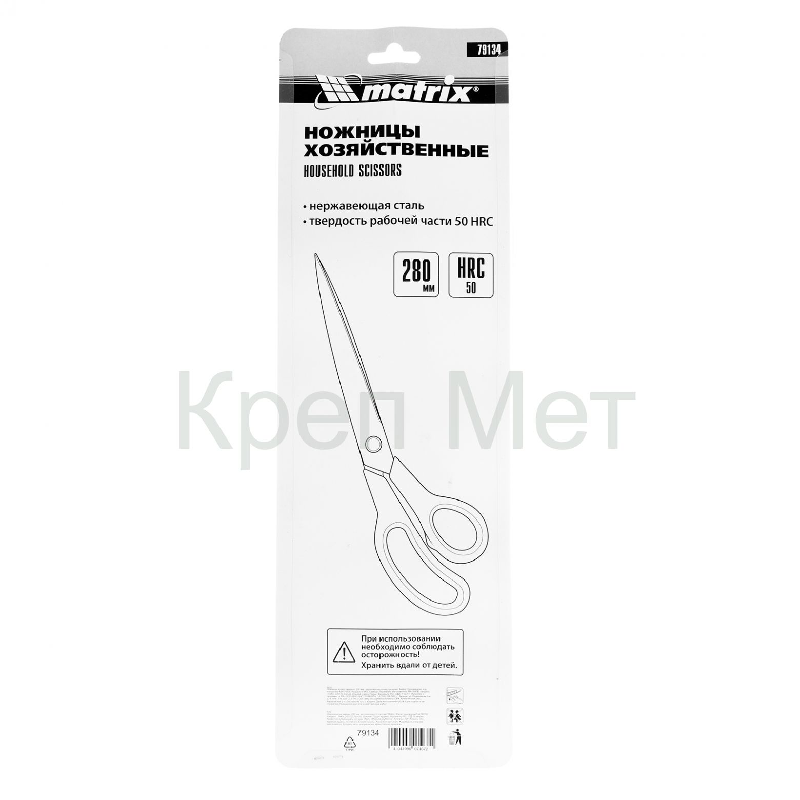 Хозяйственные ножницы Matrix 79134 длиной 280 мм, с двухкомпонентными рукоятками, используются для разрезания бумаги, картона, тканей и других материалов. Изогнутые рукоятки упрощают выполнение длинных продольных разрезов, например, при раскройке обоев. Инструмент применяется в быту.