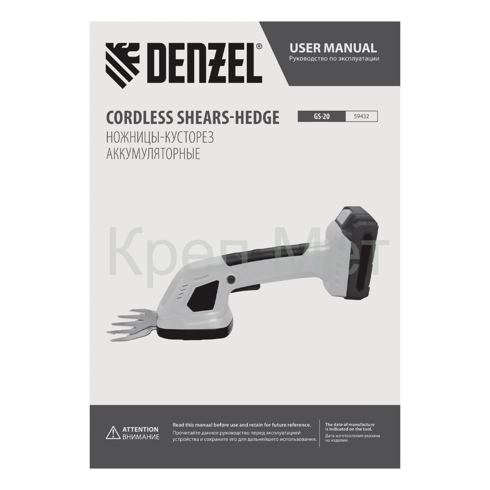 - Ножницы-кусторез аккумуляторные GS-20, Li-Ion, 20 В Denzel