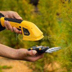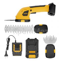 Аккумуляторные ножницы-кусторез Denzel GS-20 59432 работают от аккумулятора Li-Ion 20 В емкостью 2 А·ч. Предусмотрено 2 режима: ножниц для срезания травы и кустореза для обрезки кустарника, ухода за живой изгородью. Максимальная толщина срезаемых веток составляет 8 мм. Ширина среза в режиме ножниц составляет 100 мм, в режиме кустореза — 200 мм, что позволяет быстро и эффективно справиться с работой. Инструмент предназначен для бытового использования.
