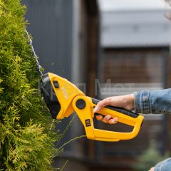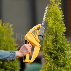 Аккумуляторные ножницы-кусторез Denzel GS-7 59428 предназначены для срезания травы, обрезки кустов и веток диаметром до 8 мм, подходят также для ухода за живой изгородью. Ширина среза в режиме ножниц составляет 80 мм, в режиме кустореза — 120 мм, что позволяет эффективно решать поставленные задачи. Инструмент работает от аккумулятора Li-Ion номинальным напряжением 7,2 В и емкостью 1,5 А·ч, не требует подключения к стационарному источнику питания и может использоваться на любом расстоянии от дома. Пригодится владельцам дачных участков.