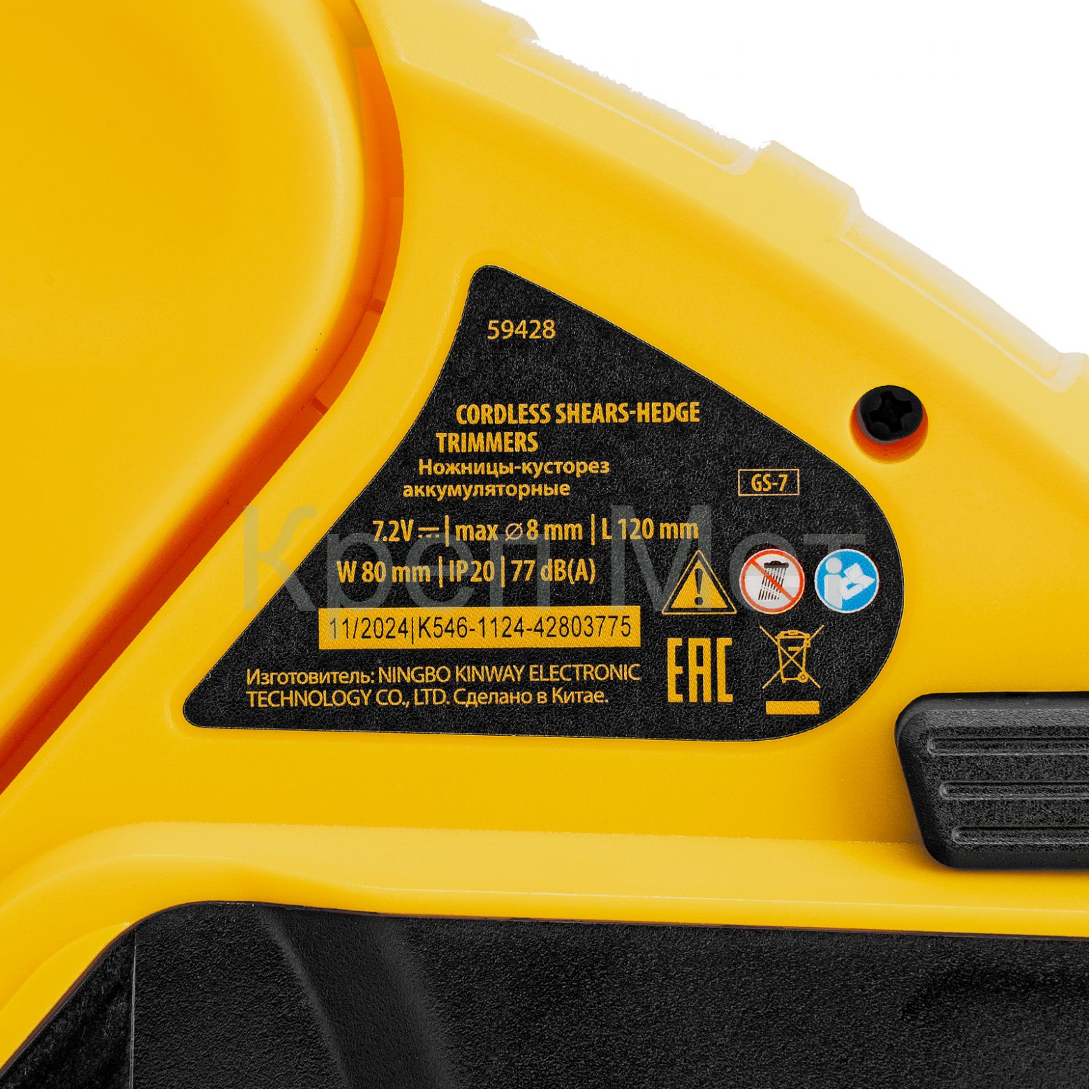 - Ножницы-кусторез аккумуляторные GS-7, Li-Ion, 7,2 В Denzel