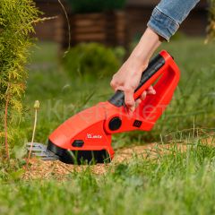 Аккумуляторные ножницы-кусторез MTX GSM-3 59480 предназначены для срезания травы, обрезки кустов и живых веток диаметром до 8 мм, подходят также для ухода за живой изгородью. Ширина среза в режиме ножниц составляет 80 мм, в режиме кустореза — 120 мм, что позволяет эффективно решать поставленные задачи. Инструмент работает от аккумулятора Li-Ion номинальным напряжением 3,6 В и емкостью 1,5 А·ч, не требует подключения к стационарному источнику питания и может использоваться на любом расстоянии от дома. Пригодится владельцам дачных участков.
