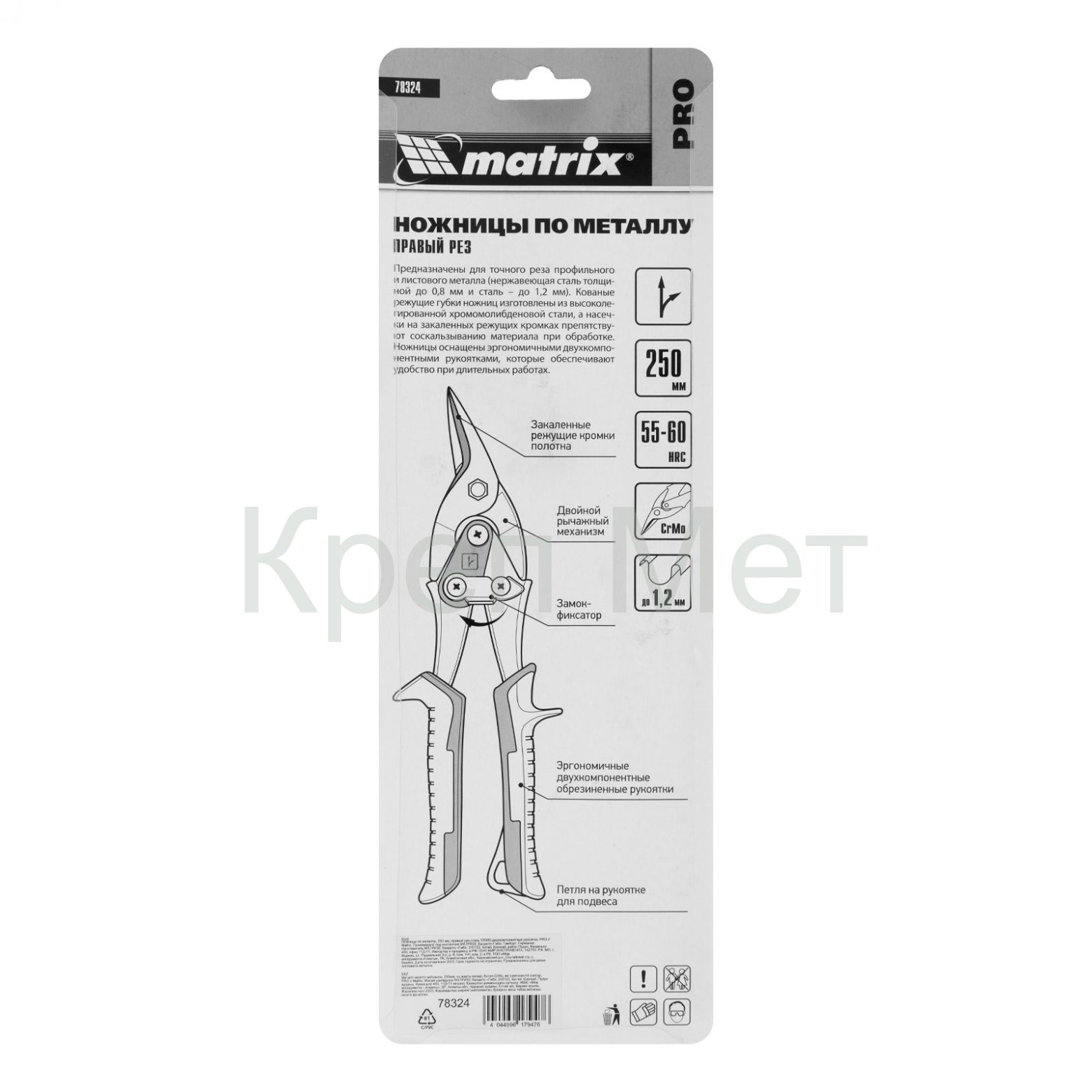 Ножницы по металлу, 250 мм, правый рез, сталь CRMO, двухкомпонентные рукоятки, PRO Matrix