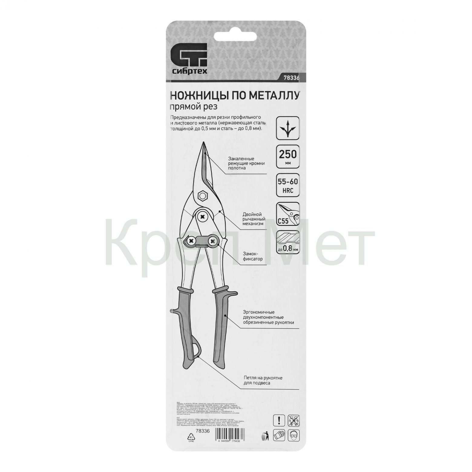 Ножницы Сибртех 78336 длиной 250 мм, из стали С55, с двухкомпонентными рукоятками, используются для прямого реза профильного и листового металла. Предназначены для проведения ремонтных и монтажных работ с материалами толщиной до 0,8 мм.