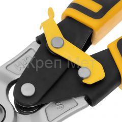 - Высокое качество исполнения — ножницы изготовлены из прочной хромомолибденовой стали методом горячей штамповки, остро заточенные кованые лезвия с насечками не соскальзывают с заготовок.