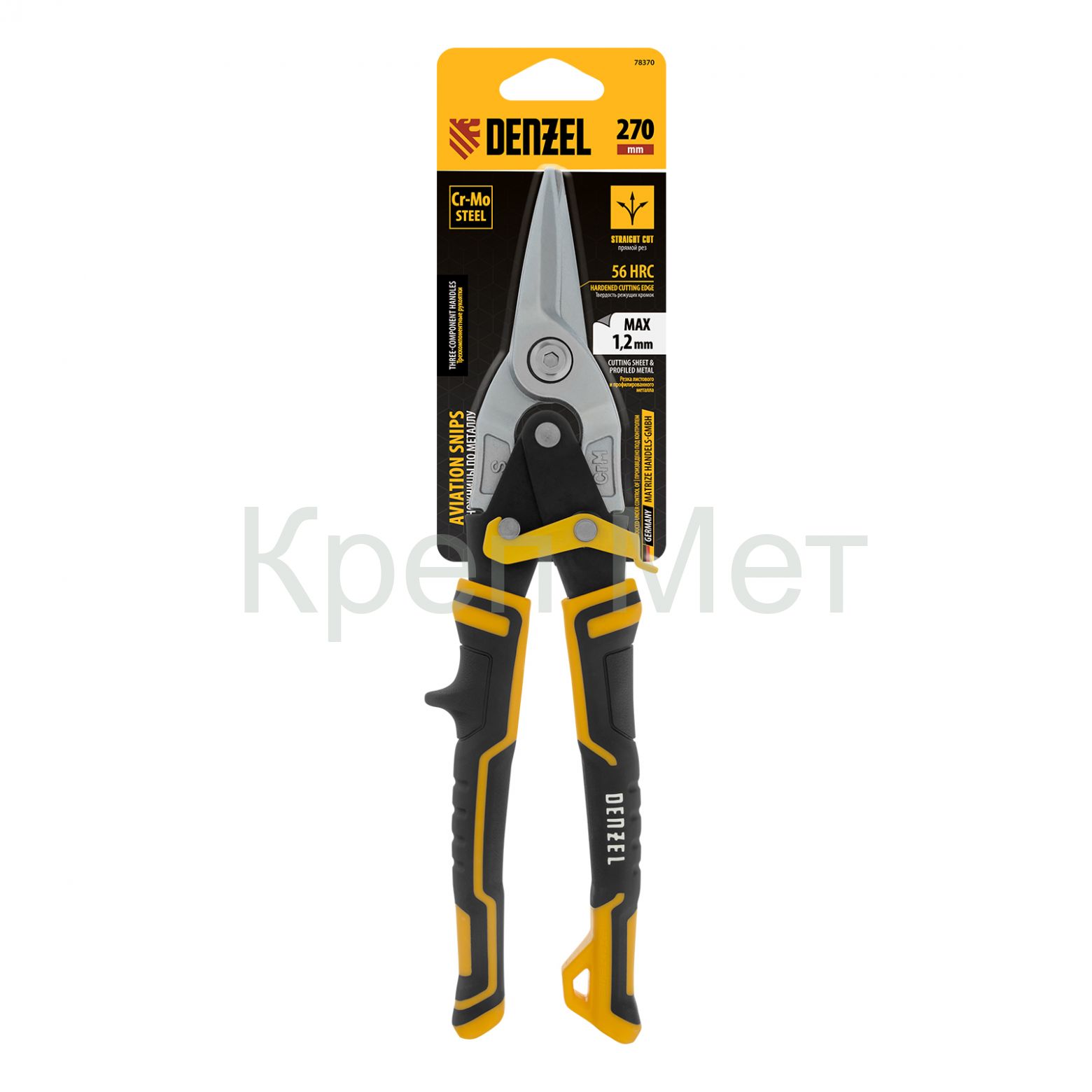 - Ножницы по металлу, 270 мм, прямой рез, сталь-CrMo, трехкомпонентные рукоятки Denzel