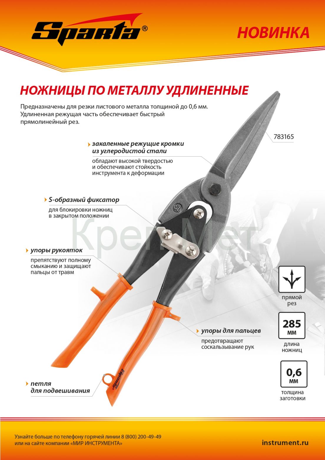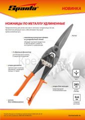 - Ножницы по металлу, удлиненные, 290 мм, пряморежущие, обрезиненные рукоятки Sparta