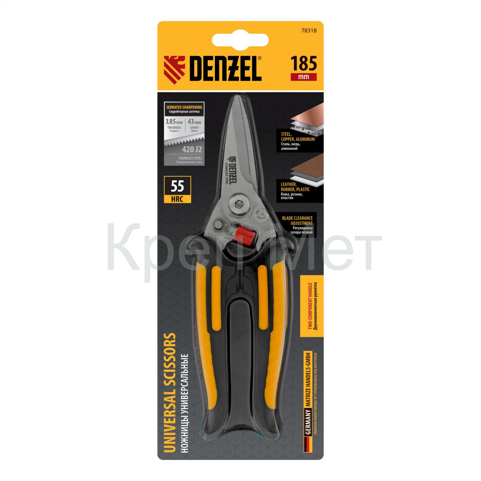 Ножницы универсальные, 185 мм, нержавеющая сталь Denzel