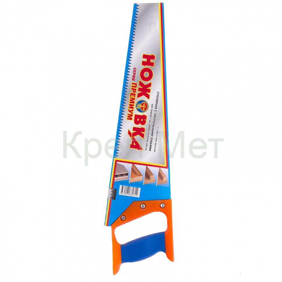 Ножовка по дереву 23162 с длиной полотна 400 мм и пластиковой рукояткой — режущий инструмент, шаг зубьев которого составляет 5 мм. Применяется для продольно-поперечного пиления древесины. Пилит в направлении от себя и на себя. Крупные зубья обеспечивают быстрый рез. Если режущая кромка затупится, ее можно заточить. Пила будет полезна столяру и плотнику, пригодится также дома или на даче.