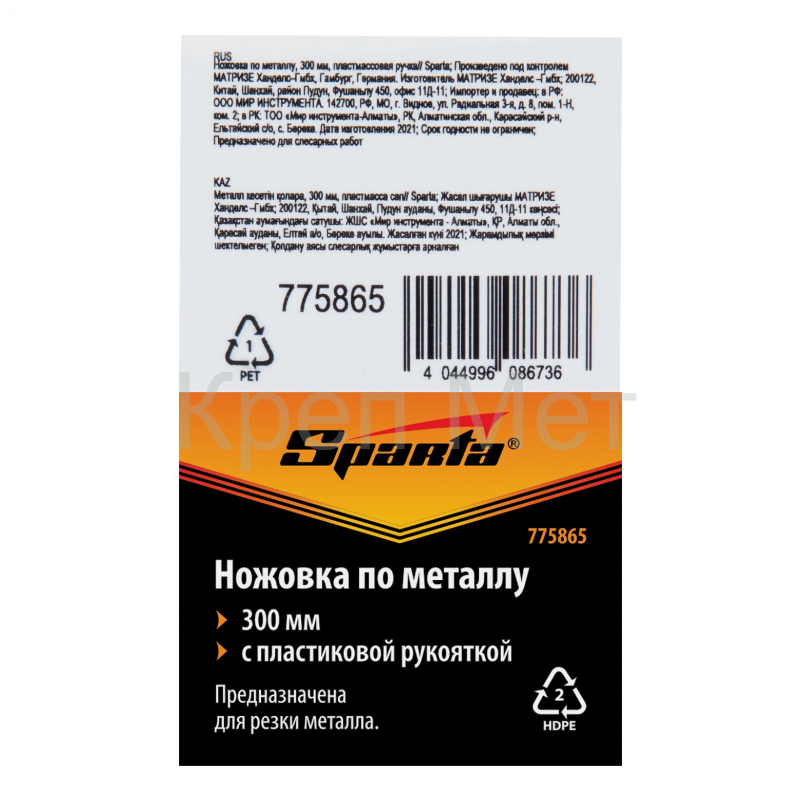 Ножовка по металлу, 300 мм, пластмассовая ручка Sparta