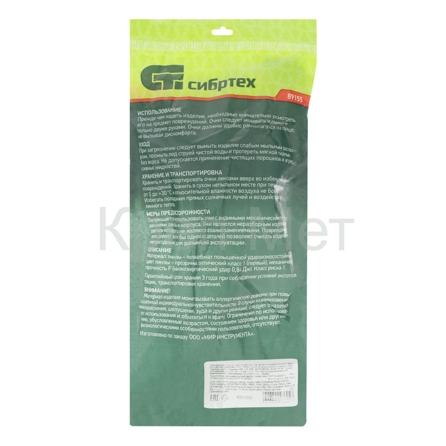 Очки защитные открытого типа, прозрачные, ударопрочный поликарбонат Сибртех