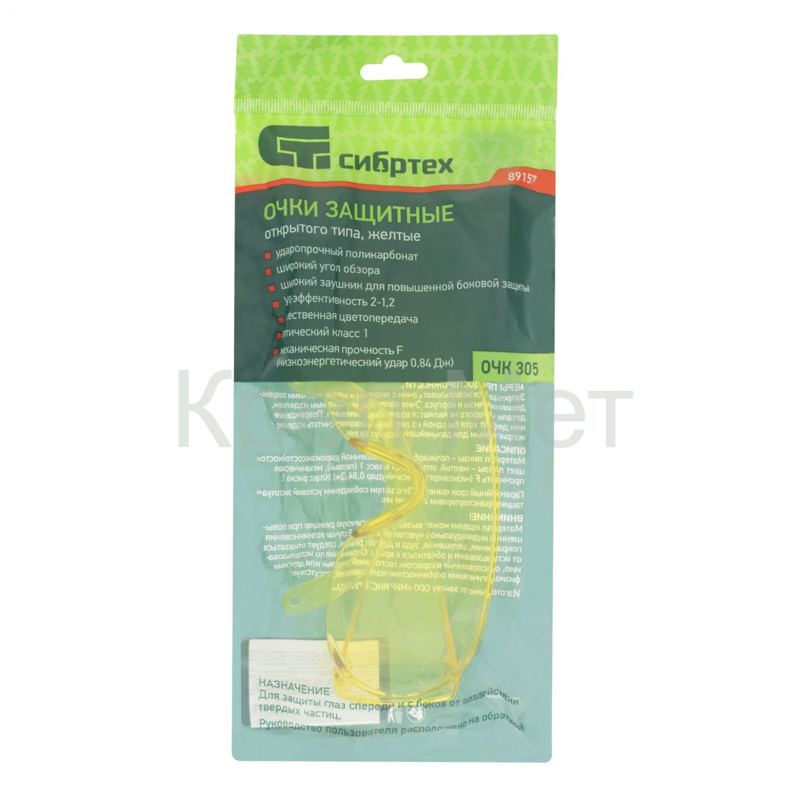 - Очки защитные открытого типа, желтые, ударопрочный поликарбонат Сибртех