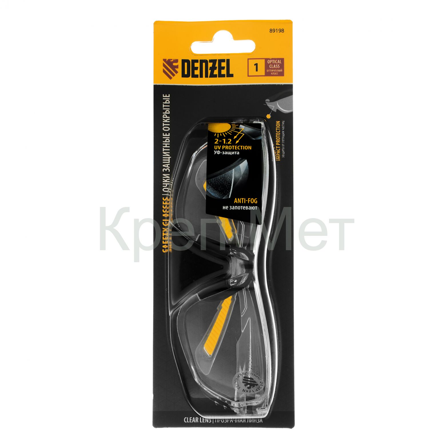 - Очки защитные открытые, поликарбонатные, прозрачная линза Denzel