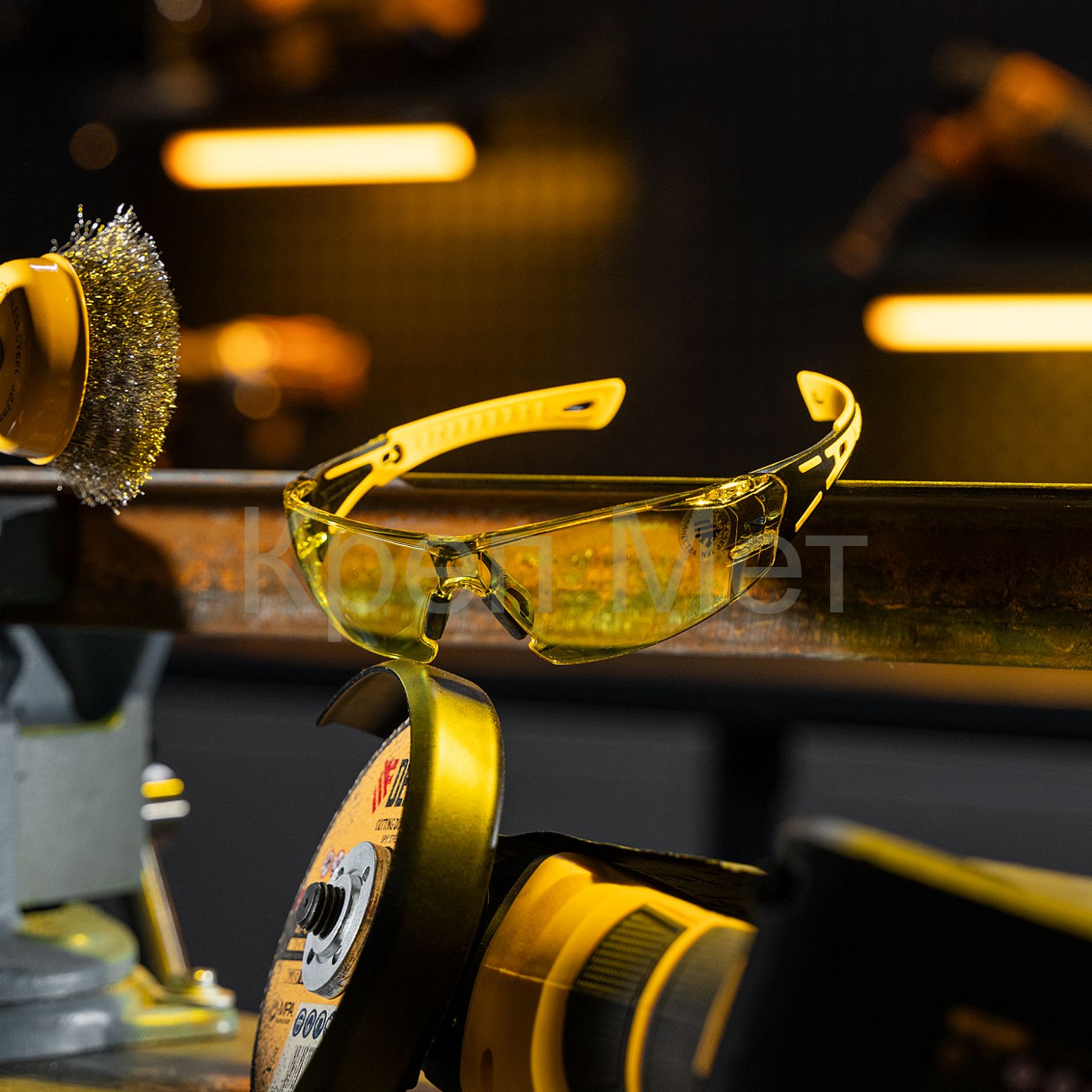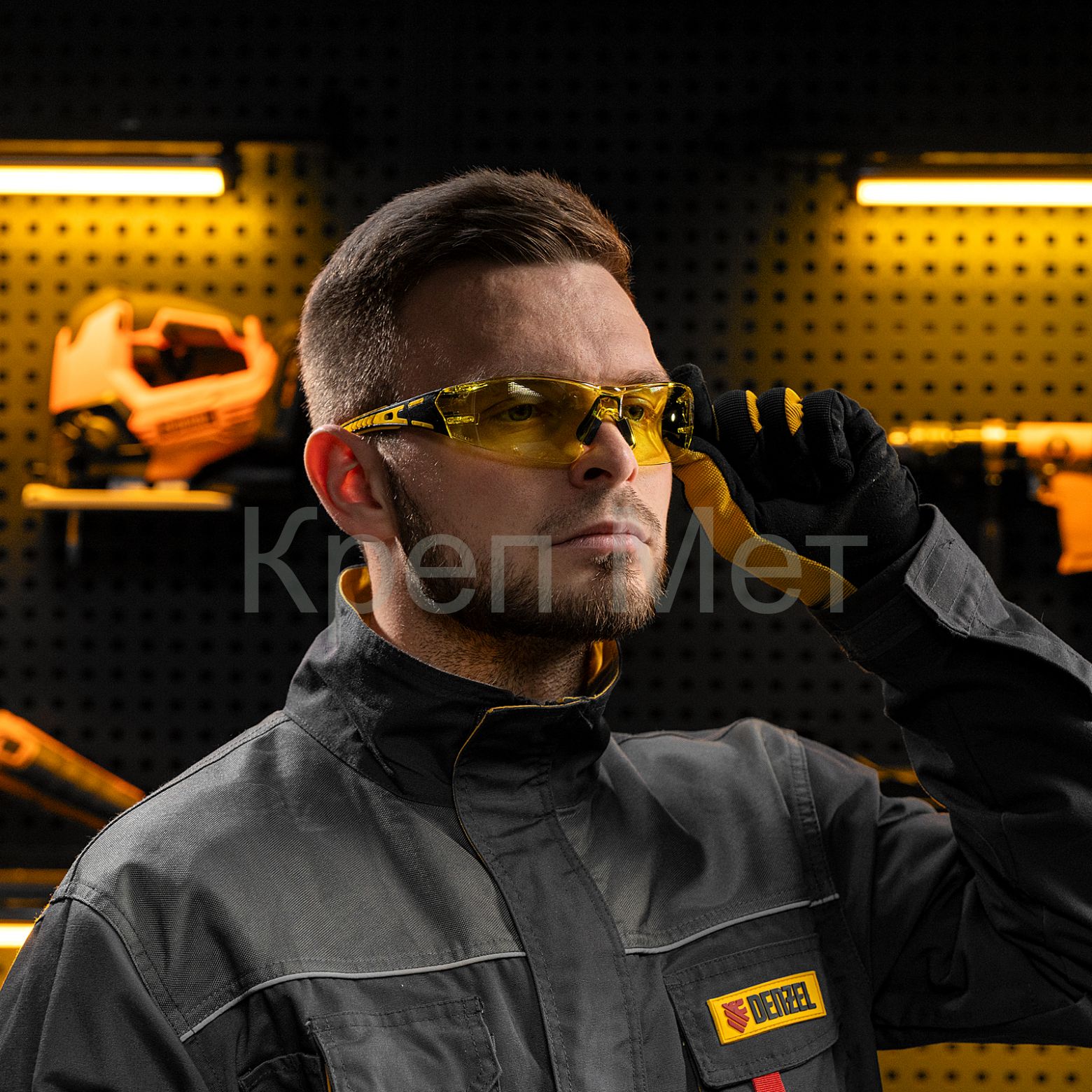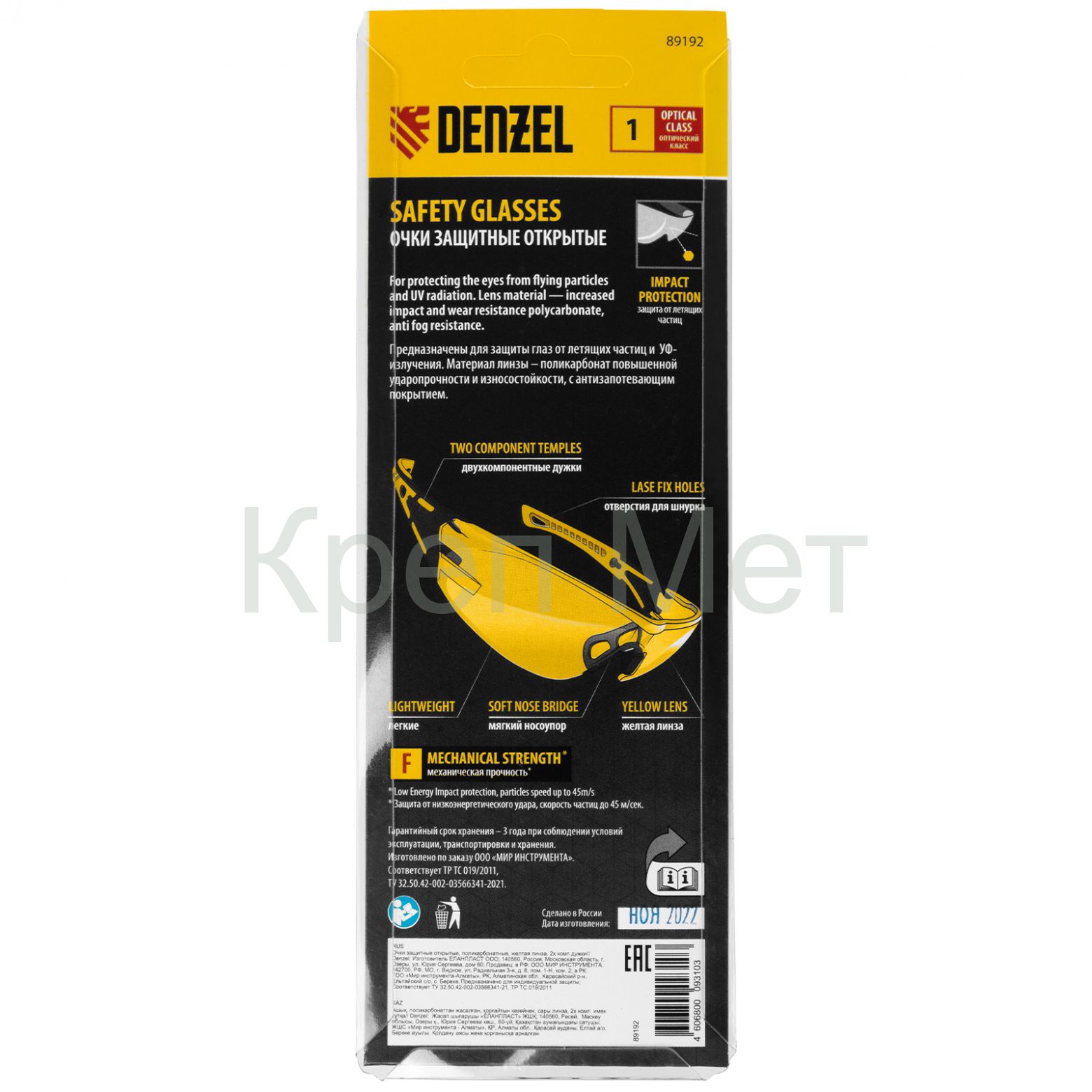- Очки защитные открытые, поликарбонатные, желтая линза, 2х комп.дужки Denzel