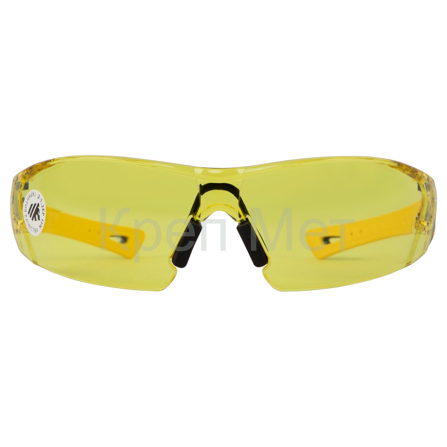 Очки защитные открытые, поликарбонатные, желтая линза, 2х комп.дужки Denzel