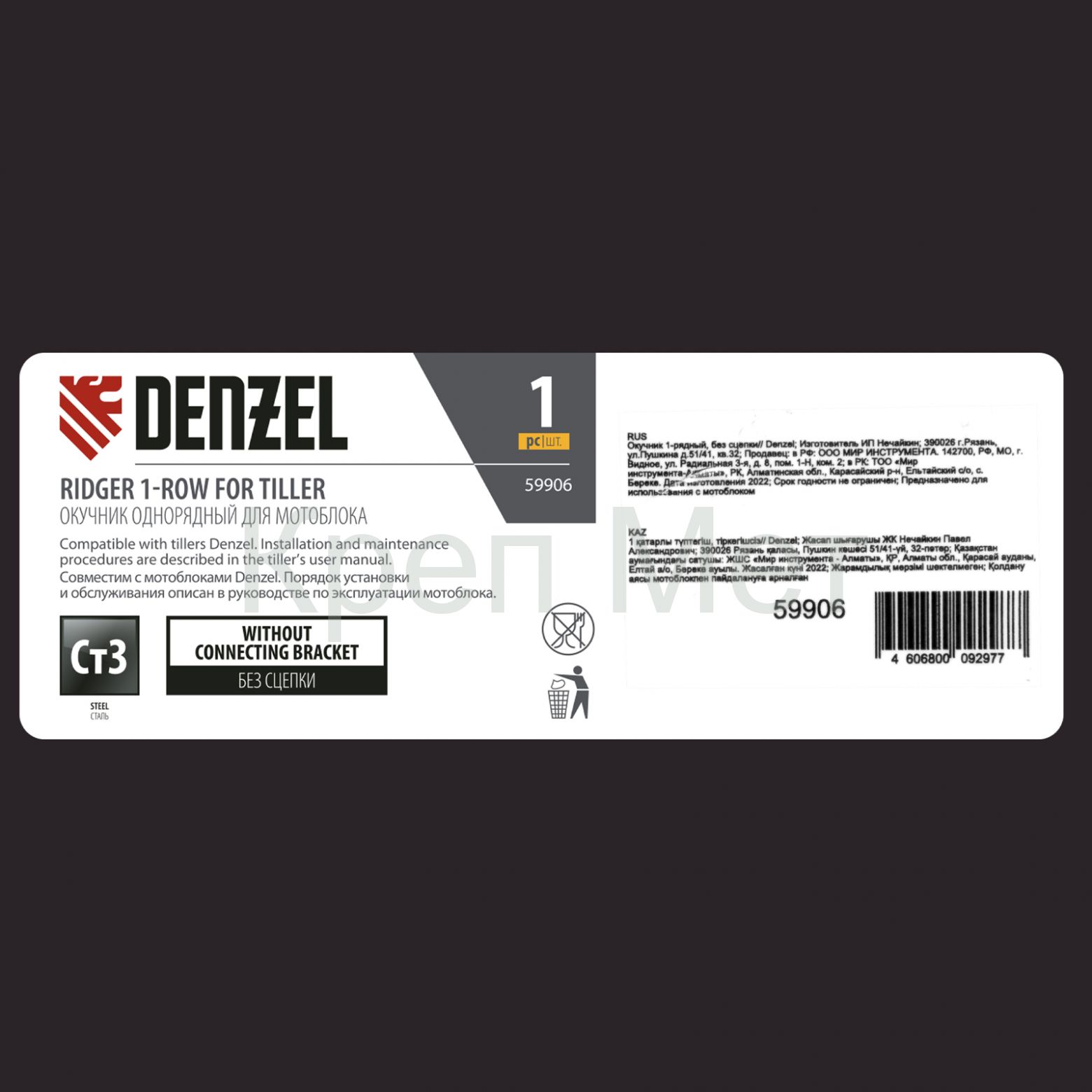 - Окучник 1-рядный, без сцепки Denzel