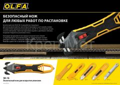 Сменное лезвие для ножей OLFA SK-16. Лезвие может разрезать толстые материалы, такие как ковер, резиновые листы, картонные коробки с двойными стенками, стретч-пленку и обвязочные ленты, удовлетворяя потребности интенсивных пользователей