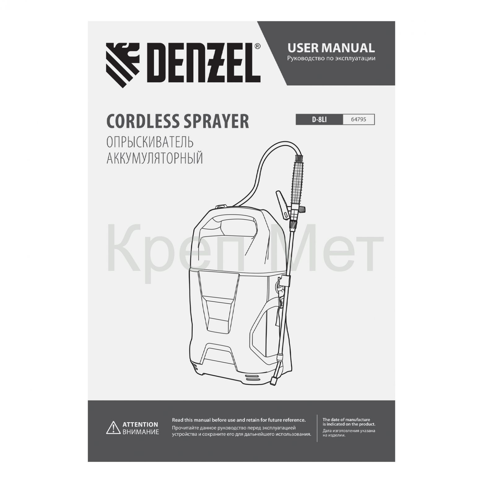 - Опрыскиватель аккумуляторный D-8LI, 8 л, 12 В, 2 Ач Denzel