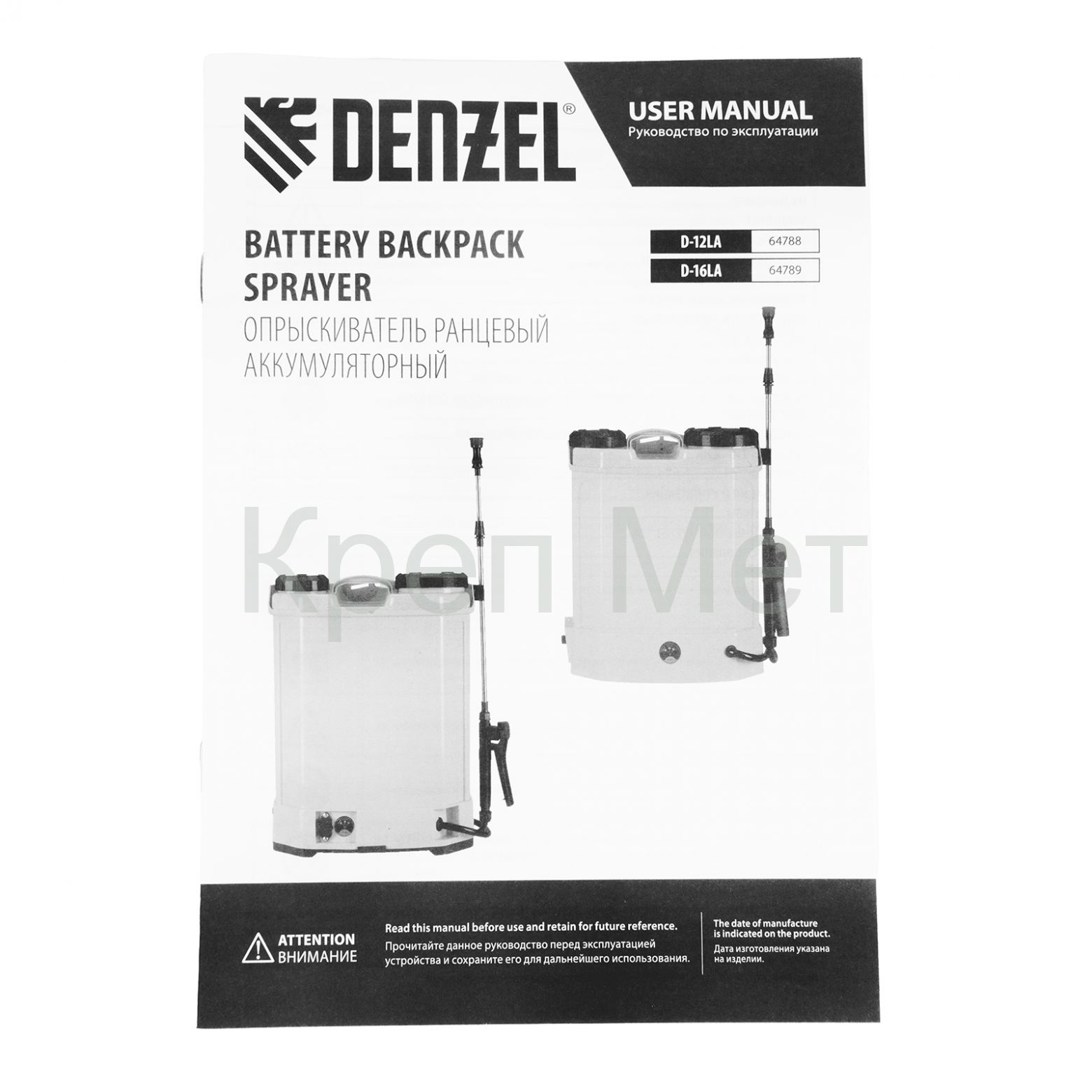 Опрыскиватель ранцевый аккумуляторный D-12LA, 12 л, 12 В, 8 Ач Denzel