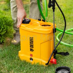 - Удобное перемещение — плечевые ремни с мягкими накладками равномерно распределяют вес опрыскивателя, снижая нагрузку на спину.