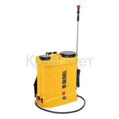 Ранцевый аккумуляторный опрыскиватель Denzel DP-10LA 64799 с баком объемом 10 л и свинцово-кислотным аккумулятором на 12 В, емкостью 8 А·ч, предназначен для распыления воды или инсектицидов. Используется для ухода за растениями, борьбы с насекомыми, дезинфекции помещения, мытья окон и фасадов. Длина штанги регулируется в диапазоне 540-870 мм, а максимальная дальность распыления составляет 4 м, что облегчает обработку труднодоступных мест.