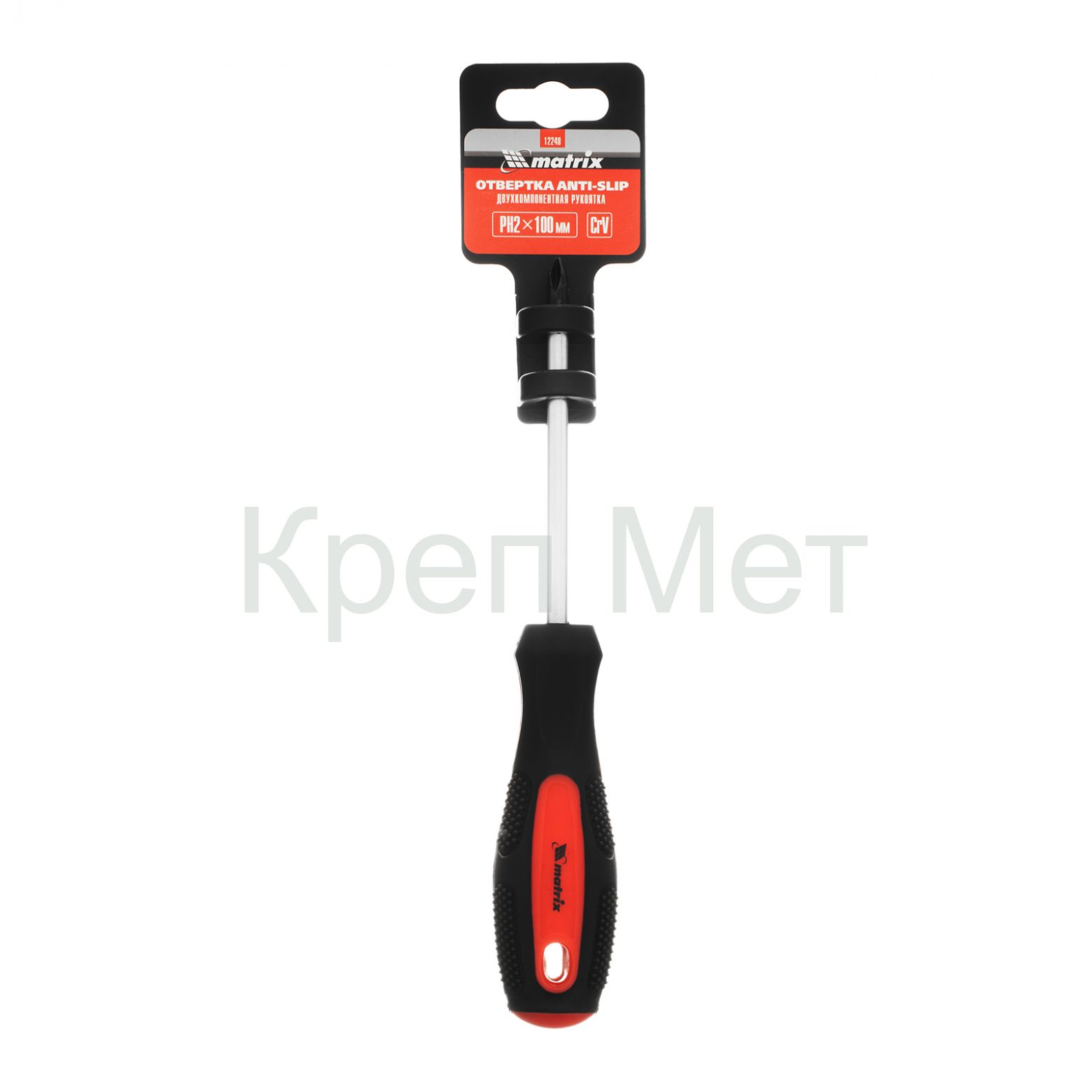 Отвертка Anti-Slip, PH2 х 100 мм, CrV, двухкомпонентная рукоятка Matrix