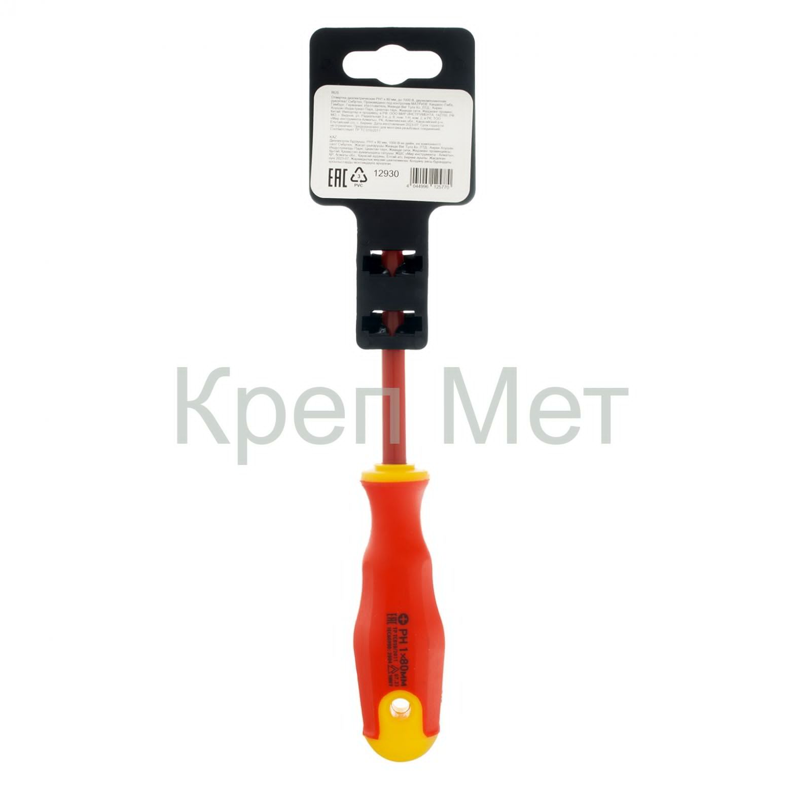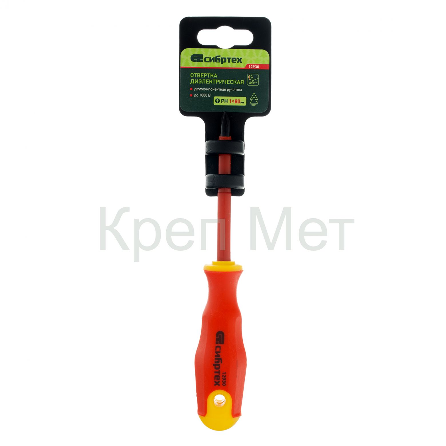 - Отвертка диэлектрическая PH1 х 80 мм, CrV, до 1000 В, двухкомпонентная рукоятка Сибртех