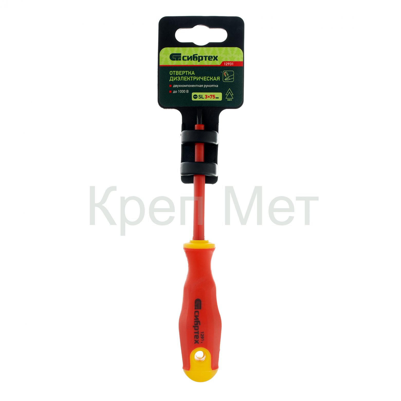 - Отвертка диэлектрическая SL3 х 75 мм, CrV, до 1000 В, двухкомпонентная рукоятка Сибртех
