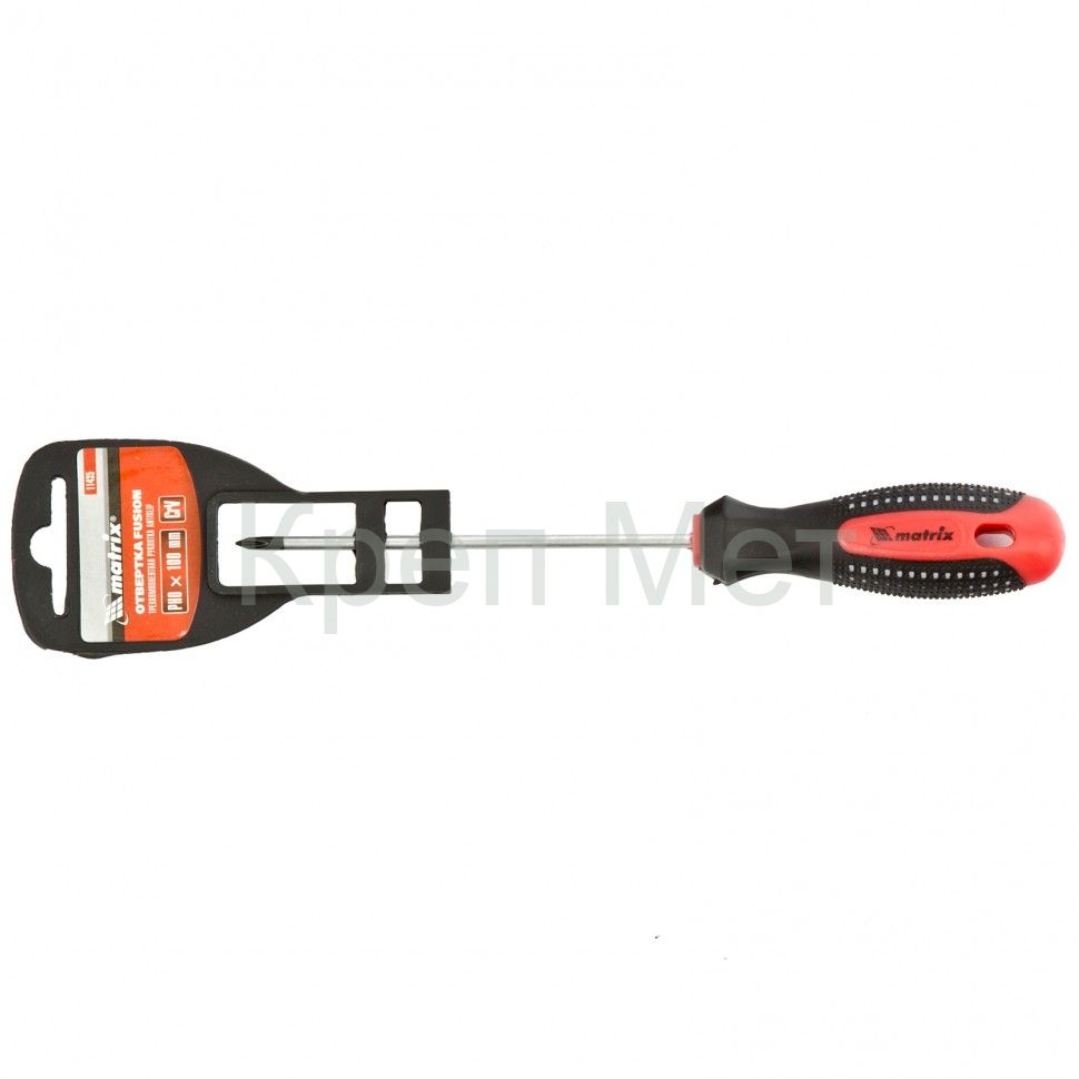 Отвертка Fusion, PH0 х 100 мм, CrV, трехкомпонентная рукоятка "Anti slip" Matrix