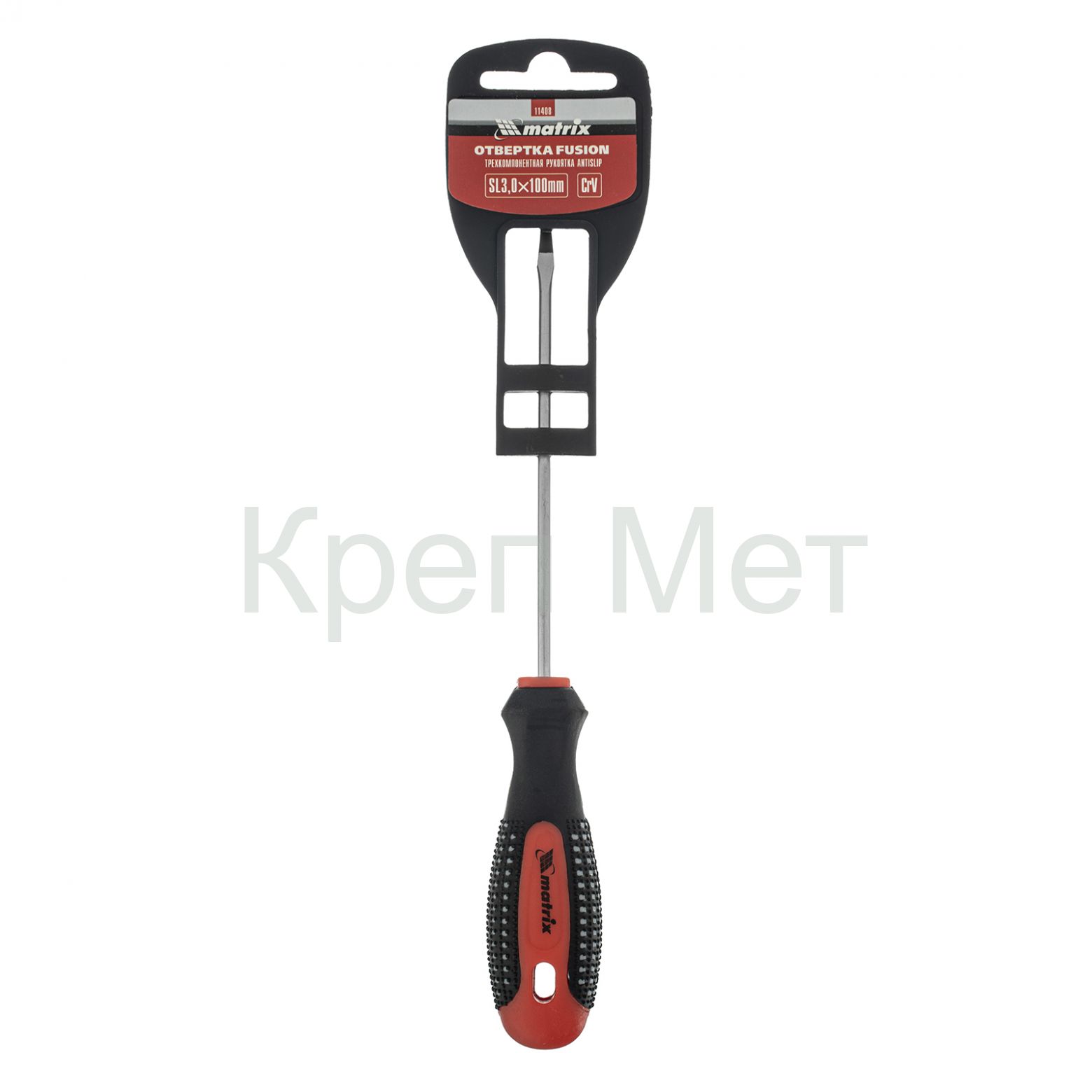 Отвертка Fusion, SL3 х 100 мм, CrV, трехкомпонентная рукоятка "Anti slip" Matrix
