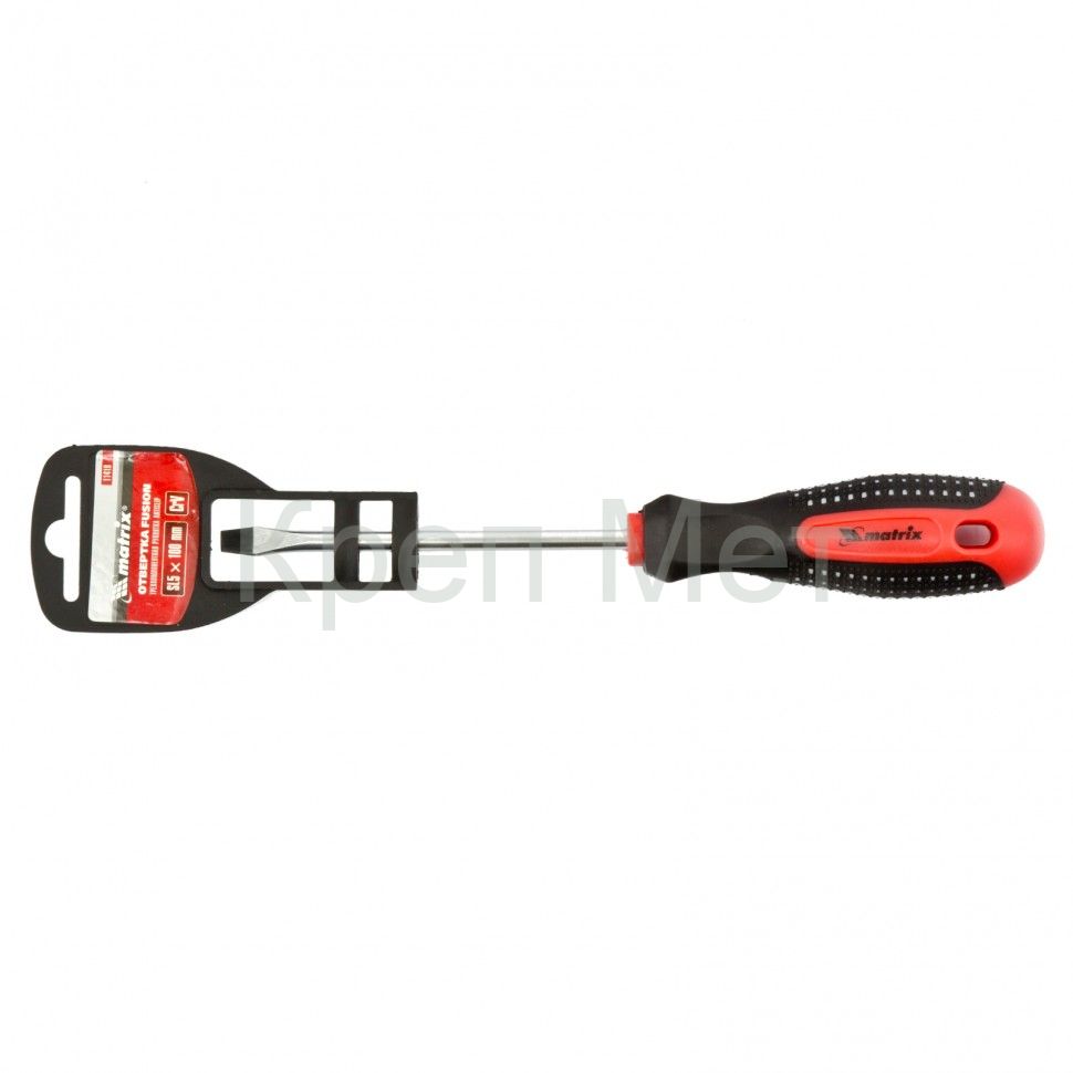Отвертка Fusion, SL5 х 100 мм, CrV, трехкомпонентная рукоятка "Anti slip" Matrix