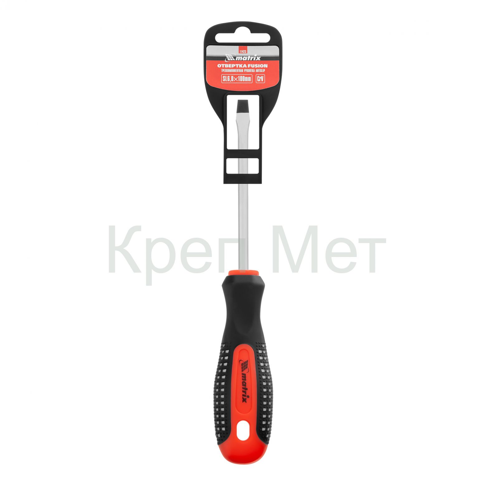 Отвертка Fusion, SL6 х 100 мм, CrV, трехкомпонентная рукоятка "Anti slip" Matrix