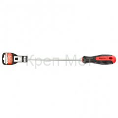 - Намагниченный наконечник — отвертку с крепежом можно направлять одной рукой, а другой удобно придерживать закрепляемую деталь.