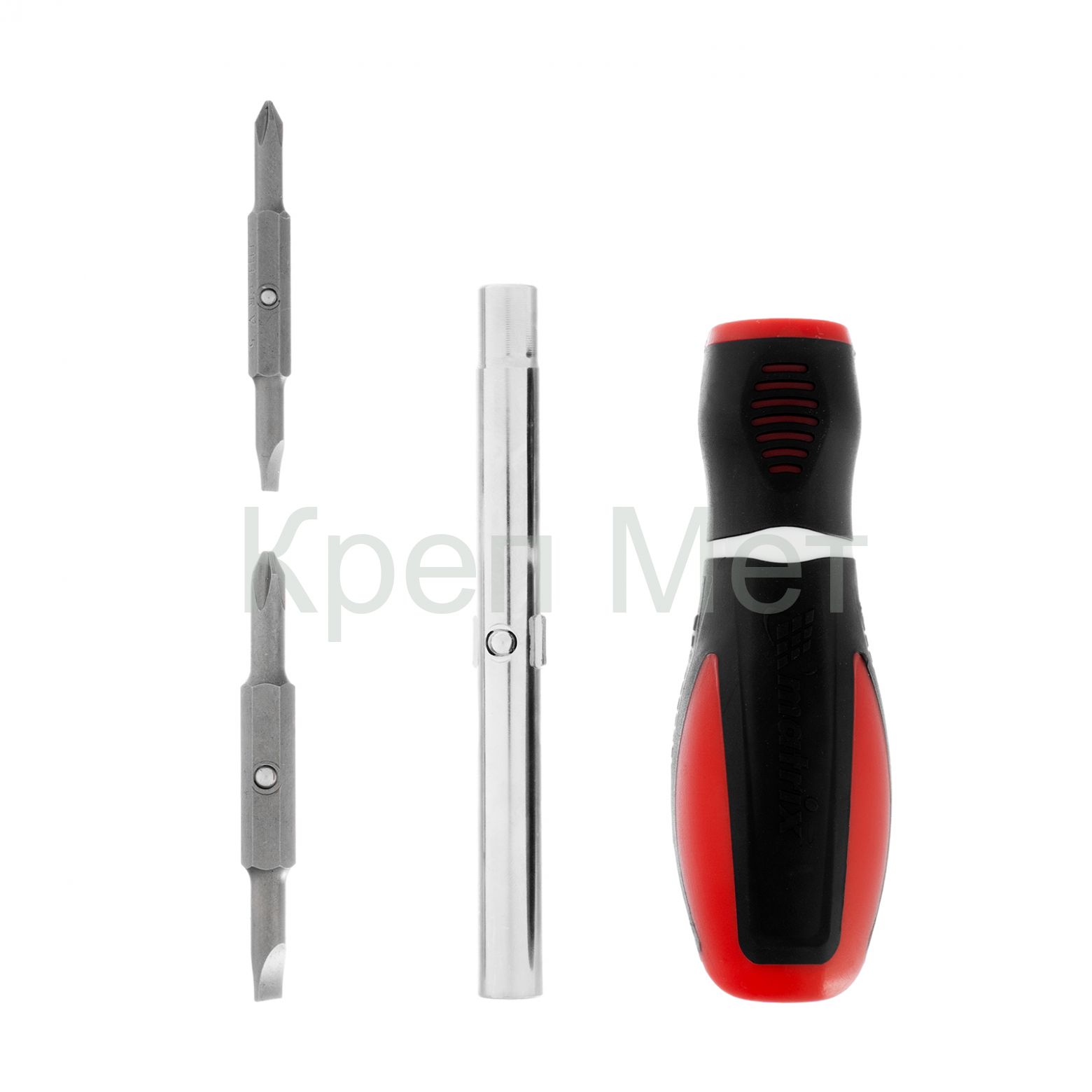 Комбинированная отвертка Matrix «Era» 13381 укомплектована стержнем и двухсторонними битами, что позволяет осуществлять монтаж/демонтаж крепежа со шлицами SL5,0 / PH1, SL6,0 / PH2. Инструмент рассчитан на профессиональное применение при проведении строительных, монтажных и ремонтных работ. Отвертка со стержнем 75 мм актуальна для работы с крепежом в углублениях.