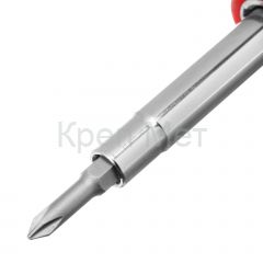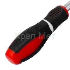 - Трехкомпонентная рукоятка с подпальцевыми выемками не скользит в руке, благодаря чему отверткой комфортно работать.