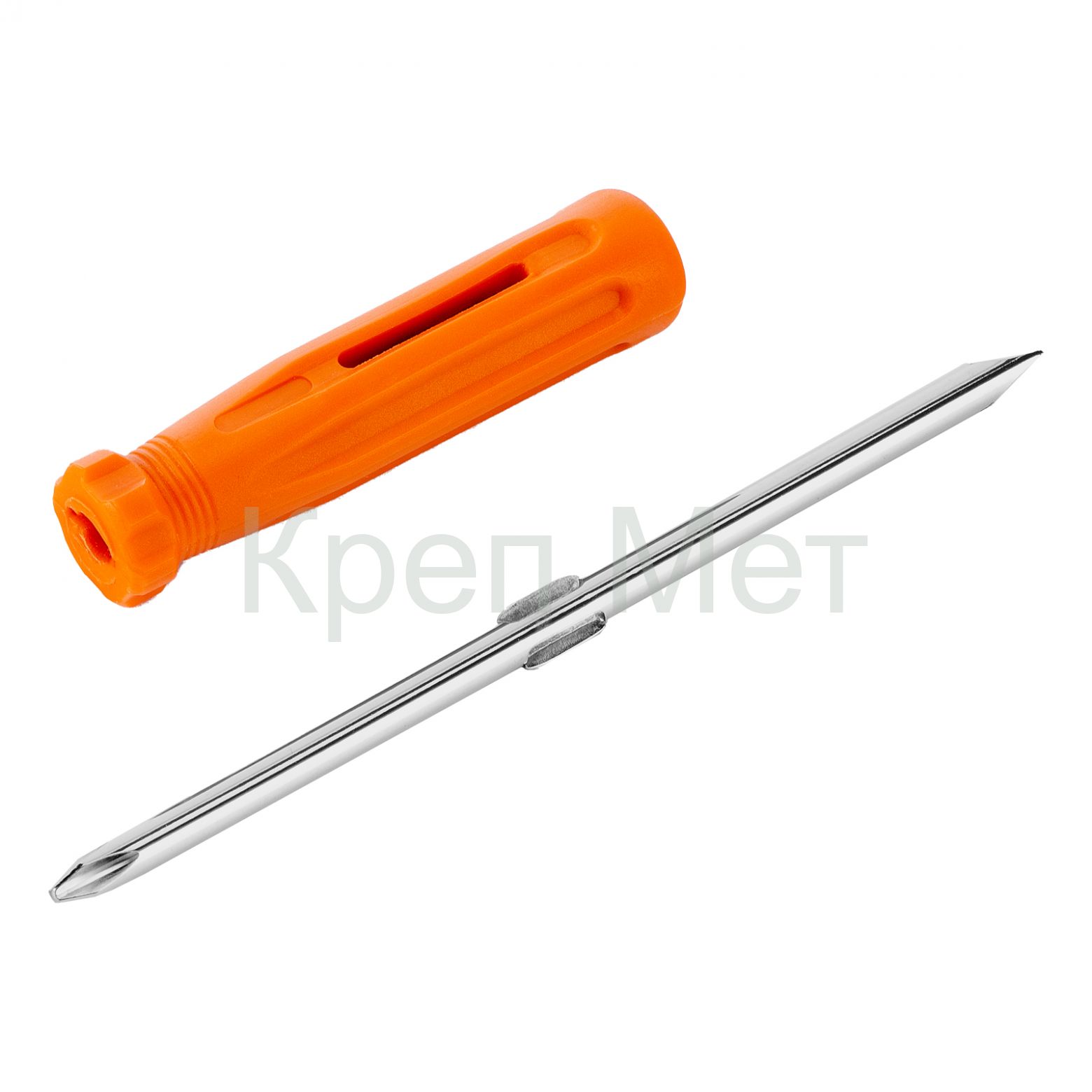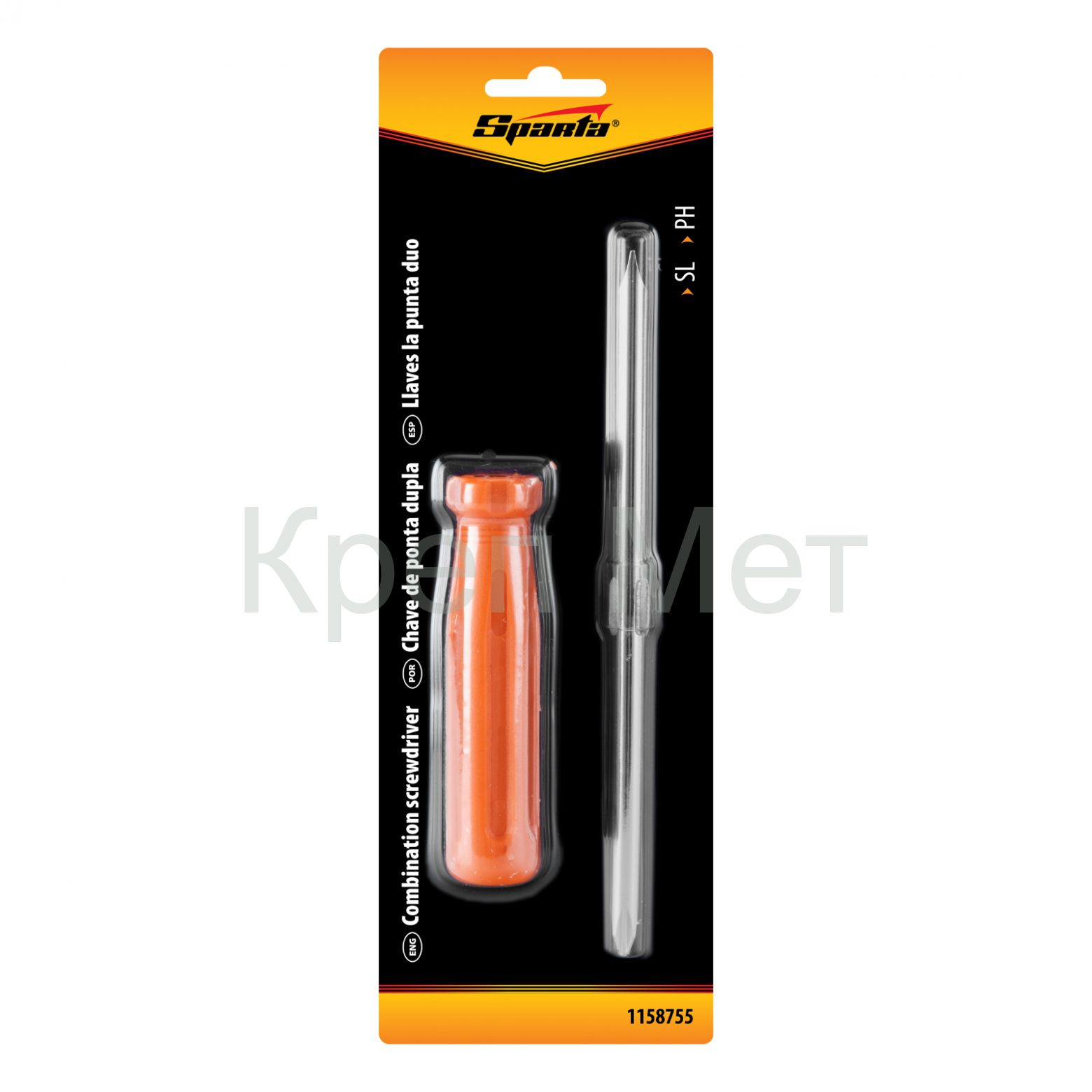 Комбинированная отвертка Sparta 115875 благодаря двустороннему стержню подходит для монтажа и демонтажа резьбовых элементов типоразмера SL6,0 и PH2. Она рассчитана на бытовое применение при осуществлении несложных ремонтных работ. Длина стержня 75 мм позволяет закручивать и извлекать легкодоступный крепеж, а также работать в углублениях.