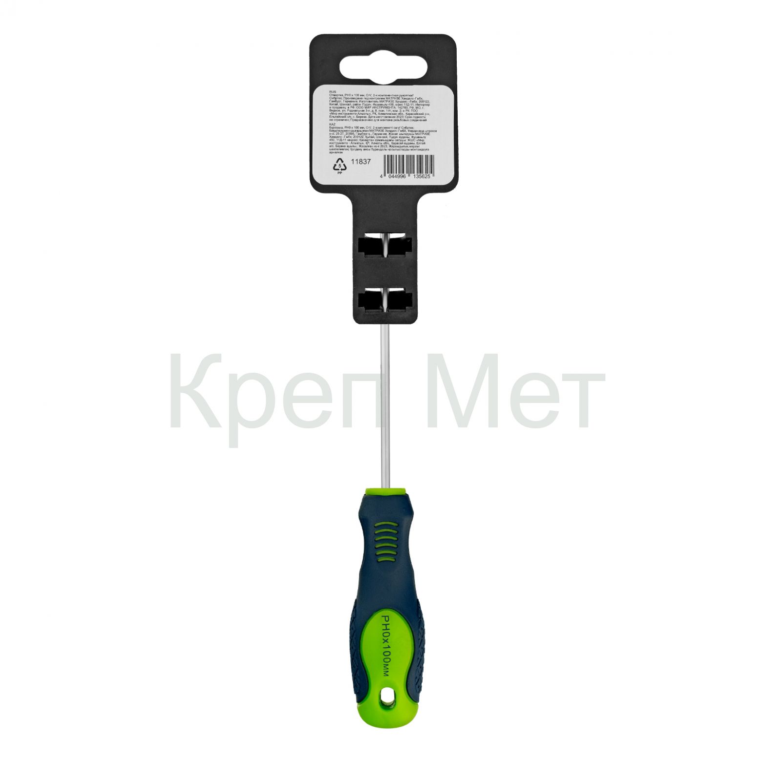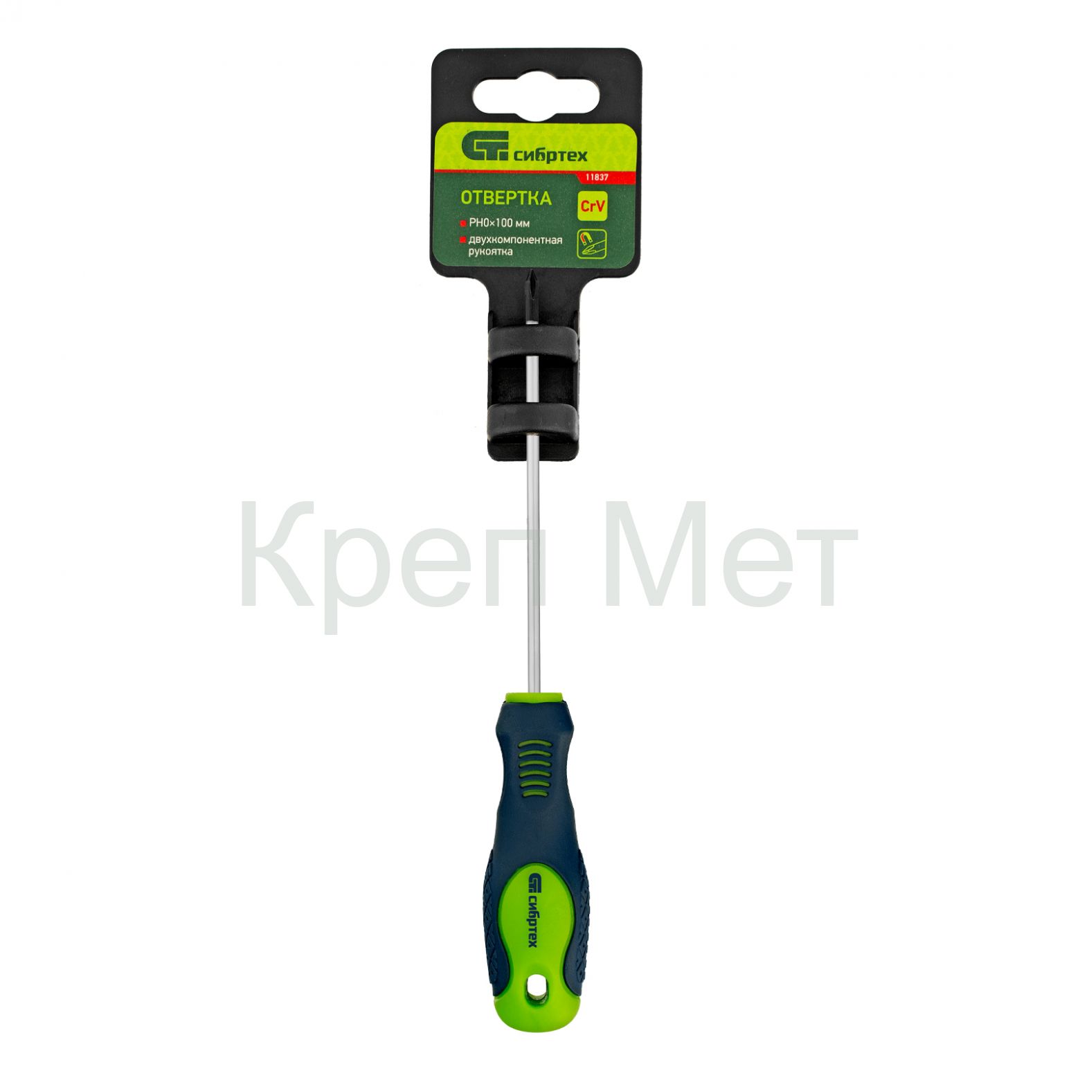 - Отвертка, PH0 х 100 мм, CrV, двухкомпонентная рукоятка Сибртех