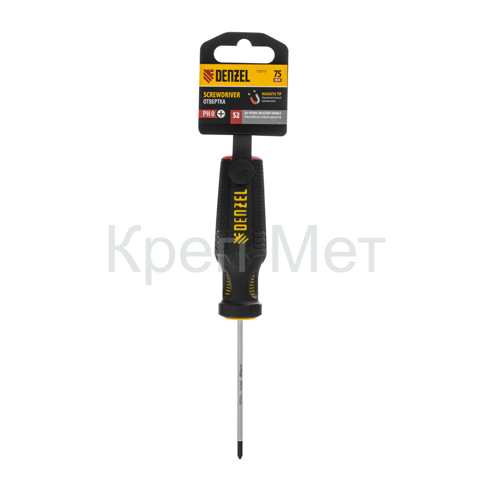 Отвертка, PH0х75 мм, S2, 3к рукоятка Denzel