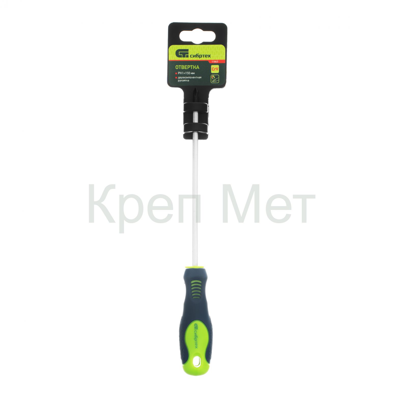 - Отвертка, PH1 х 150 мм, CrV, двухкомпонентная рукоятка Сибртех