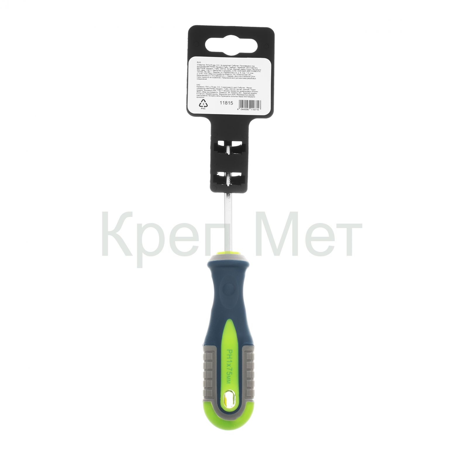 Отвертка Сибртех 11815, PH1 х 75 мм, из стали CrV, с 3-х компонентной рукояткой, пригодится частным мастерам для монтажа/демонтажа крепежных элементов типоразмера PH1. Она поможет произвести ремонтные и монтажные работы дома, в гараже, на даче. Благодаря стержню длиной 75 мм отверткой можно работать в углублениях.