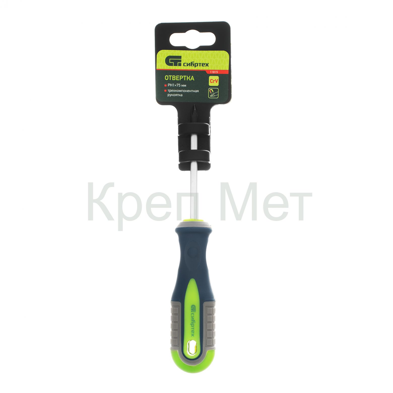 Отвертка, PH1 х 75 мм, CrV, трехкомпонентная рукоятка Сибртех