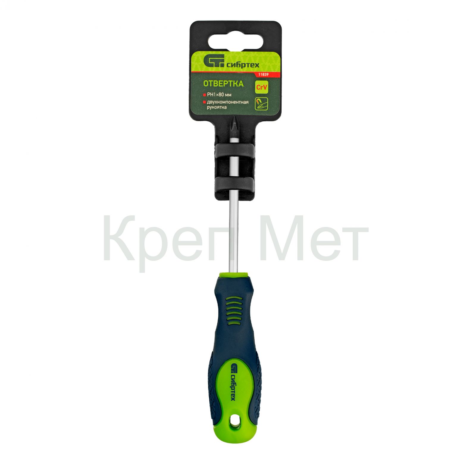 Отвертка, PH1 х 80 мм, CrV, двухкомпонентная рукоятка Сибртех