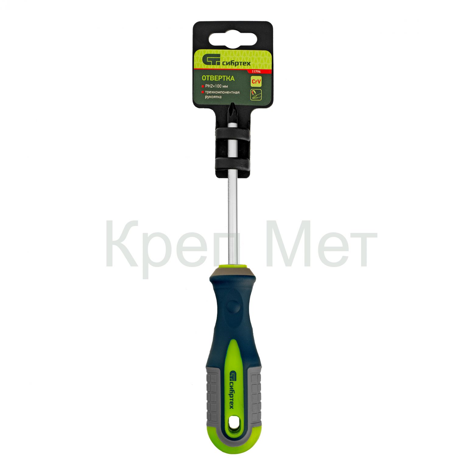 - Отвертка, PH2 х 100 мм, CrV, трехкомпонентная рукоятка Сибртех
