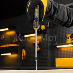 Отвертка Denzel 121847 с трехкомпонентной рукояткой, со стержнем из стали S2, длиной 150 мм, предназначена для закручивания и откручивания резьбового крепежа типа PH3. Высокоточный намагниченный шлиц избавляет мастера от необходимости придерживать винт или саморез рукой. Отвертка рекомендована для профессионального использования.
